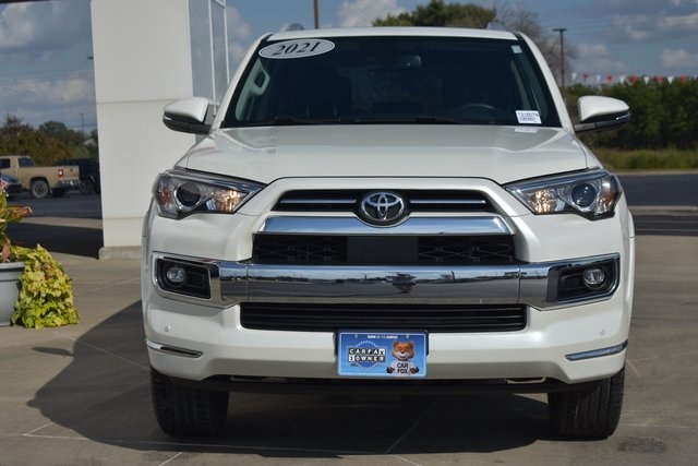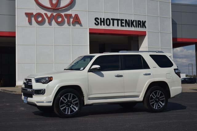 2021 Toyota 4Runner White Limited 4.0L V6 SMPI DOHC 5-Speed Automatic with Overdrive 4WD Towing/Camper Pkg, Clean Carfax, One Owner, Navigation, Sunroof/Moonroof, Leather, Local Trade, Backup Camera, 4Runner Limited, 5-Speed Automatic with Overdrive, 4WD, White, Black/Graphite Leather, 15 Speakers, ABS brakes, Air Conditioning, Alloy wheels, AM/FM radio: SiriusXM, Automatic temperature control, Body Color Heated Mirrors, Bumpers: body-color, Compass, Driver door bin, Driver vanity mirror, Exterior Parking Camera Rear, Front Bucket Seats, Front Center Armrest, Front dual zone A/C, Front reading lights, Fully automatic headlights, Garage Door Opener, Garage door transmitter: HomeLink, Heated door mirrors, Heated front seats, Heated/Ventilated Front Bucket Seats, Illuminated entry, Leather Seat Trim, Low tire pressure warning, Memory seat, Navigation System, Outside temperature display, Overhead console, Panic alarm, Passenger door bin, Passenger vanity mirror, Power door mirrors, Power driver seat, Power moonroof, Power passenger seat, Power steering, Power windows, Rear seat center armrest, Rear window defroster, Rear window wiper, Remote keyless entry, Right & Left Individual Air Conditioner, Roof rack: rails only, Speed control, Split folding rear seat, Spoiler, Steering wheel mounted audio controls, Telescoping steering wheel, Tilt steering wheel, Traction control, Turn signal indicator mirrors, Ventilated front seats.Standard with Shottenkirk Care which includes a 3 month 3000k mile powertrain warranty, dent and ding repair, tire road hazard and wheel repair, and windshield chip repair. (Call us for details)Shottenkirk Toyota of Quincy,Illinois has been serving the needs of Tri-State motorists for years. Offering top notch new and used Toyota sales,service,and parts in a friendly environment that puts a premium on service,not prices! We're proud to be a primary destination for Toyota shoppers from Jacksonville,Springfield,Carthage,Il.,Hannibal,Kirksville,Troy,St.Louis,Columbia,Mo.,And the Mt.Pleasant,Keokuk,Farmington,Fort Madison,Iowa areas. Whether you visit us to buy a new Toyota like a Camry,Corolla,Rav4,Venza,Highlander,Sequoia,Prius,Tacoma,Tundra,Yaris,4Runner,and Sienna or an used Toyota ,or to get service for your existing vehicle,you'll get the same impeccable service. We have an outstanding reputation for quality and a no-hassle buying experience.You may also visit us at Shottenkirk Toyota.com.