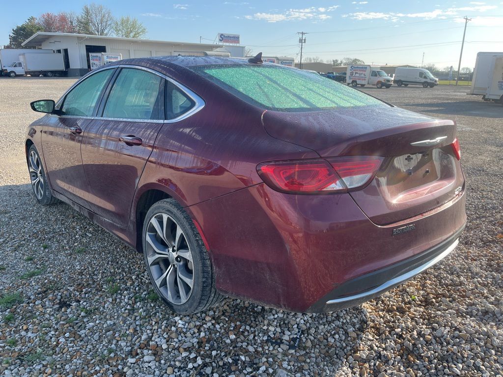 2015 Chrysler 200 C Velvet Red Pearlcoat 4D Sedan 2.4L I4 PZEV MultiAir 9-Speed 948TE Automatic FWD C This vehicle comes well equipped with 4-Wheel Disc Brakes, 6 Speakers, ABS brakes, Accessory Switch Bank, Air Conditioning, Alloy wheels, AM/FM radio: SiriusXM, Anti-whiplash front head restraints, Auto-dimming Rear-View mirror, Automatic temperature control, Brake assist, Bumpers: body-color, Compass, Delay-off headlights, Driver door bin, Driver vanity mirror, Dual front impact airbags, Dual front side impact airbags, Electronic Stability Control, Four wheel independent suspension, Front anti-roll bar, Front Bucket Seats, Front Center Armrest, Front dual zone A/C, Front fog lights, Front reading lights, Fully automatic headlights, Garage door transmitter, Heated door mirrors, Heated front seats, Illuminated entry, Integrated Voice Command w/Bluetooth, Knee airbag, Leather Trimmed Bucket Seats, Low tire pressure warning, Occupant sensing airbag, Outside temperature display, Overhead airbag, Overhead console, Panic alarm, ParkView Rear Back-Up Camera, Passenger door bin, Passenger vanity mirror, Power door mirrors, Power driver seat, Power passenger seat, Power steering, Power windows, Radio data system, Radio: Uconnect 5.0 AM/FM/BT, Rear anti-roll bar, Rear seat center armrest, Rear window defroster, Remote keyless entry, Security system, SIRIUSXM Satellite Radio, Speed control, Speed-sensing steering, Speed-Sensitive Wipers, Split folding rear seat, Steering wheel mounted audio controls, Tachometer, Telescoping steering wheel, Tilt steering wheel, Traction control, Trip computer, Turn signal indicator mirrors, Uconnect Voice Command w/Bluetooth, Variably intermittent wipers, and Wheels: 17" x 7.5" Satin Silver Aluminum.