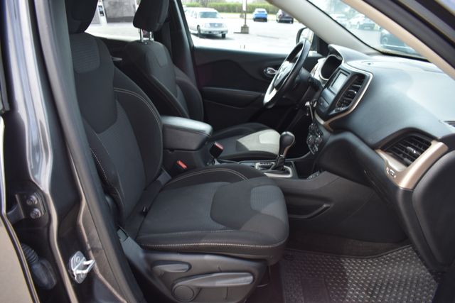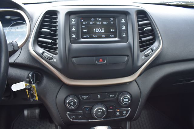 2015 Jeep Cherokee Granite Crystal Metallic Clearcoat Latitude 2.4L I4 MultiAir 9-Speed 948TE Automatic FWD Clean Carfax, Local Trade, Cherokee Latitude, 9-Speed 948TE Automatic, FWD, Granite Crystal Metallic Clearcoat, Black Cloth, 6 Speakers, ABS brakes, Air Conditioning, Alloy wheels, AM/FM radio, Bumpers: body-color, Driver door bin, Driver vanity mirror, Front Bucket Seats, Front Center Armrest, Front reading lights, Fully automatic headlights, GPS Antenna Input, Illuminated entry, Low tire pressure warning, Outside temperature display, Overhead console, Panic alarm, ParkView Rear Back-Up Camera, Passenger door bin, Passenger vanity mirror, Power door mirrors, Power Heated Mirrors, Power steering, Power windows, Premium Cloth Bucket Seats, Radio data system, Rear seat center armrest, Rear window defroster, Rear window wiper, Remote keyless entry, Roof rack: rails only, Speed control, Split folding rear seat, Spoiler, Steering wheel mounted audio controls, Telescoping steering wheel, Tilt steering wheel, Traction control.
