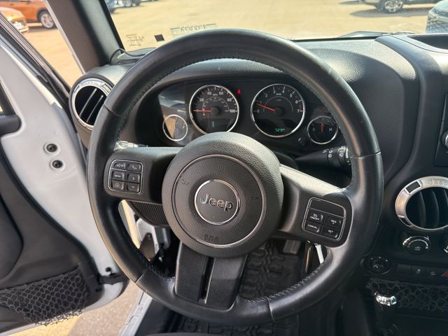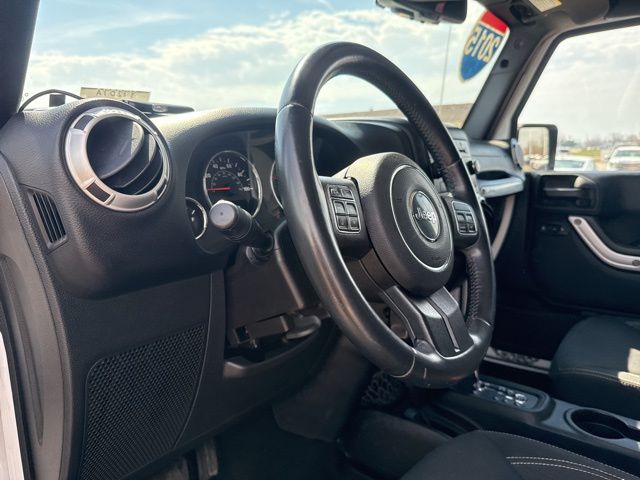 Clean CARFAX. XM SIRIUS Radio, Local trade, Shottenkirk Certified, Fully Serviced and Detailed, 3-piece hard top, Tow package, Free Carfax history report, Alloy Wheels, Wrangler Unlimited Sahara, 4D Sport Utility, 3.6L V6 24V VVT, 5-Speed Automatic, 4WD, Bright White Clearcoat, Black w/Cloth Bucket Seats, 18" x 7.5" 7-Spoke Polished Aluminum Wheels, 3.73 Rear Axle Ratio, 4-Wheel Disc Brakes, 8 Speakers, ABS brakes, Air Conditioning, Alloy wheels, AM/FM radio, Anti-Spin Differential Rear Axle, Audio Jack Input for Mobile Devices, Auto-dimming Rear-View mirror, Black 3-Piece Hard Top, Brake assist, CD player, Class II Receiver Hitch, Cloth Bucket Seats, Compass, Connectivity Group, Delete Sunrider Soft Top, Driver door bin, Driver vanity mirror, Dual front impact airbags, Electronic stabiliy control, Freedom Panel Storage Bag, Front anti-roll bar, Front Bucket Seats, Front Center Armrest w/Storage, Front fog lights, Front reading lights, Fully automatic headlights, Heated door mirrors, Heavy Duty Suspension w/Gas Shocks, Illuminated entry, Integrated roll-over protection, Leather Wrapped Steering Wheel, Low tire pressure warning, Manufacturer's Statement of Origin, Max Tow Package, Occupant sensing airbag, Outside temperature display, Panic alarm, Passenger door bin, Passenger vanity mirror, Power door mirrors, Power steering, Power windows, Quick Order Package 24G, Radio data system, Radio: Uconnect 130 AM/FM/CD/MP3, Rear anti-roll bar, Rear Window Defroster, Rear Window Wiper/Washer, Remote keyless entry, Security system, Speed control, Split folding rear seat, Steering wheel mounted audio controls, Tachometer, Tilt steering wheel, Tire Pressure Monitoring Display, Traction control, Trailer Tow Group, Trailer Tow w/4-Pin Connector Wiring, Trip computer, Variably intermittent wipers, Vehicle Information Center.