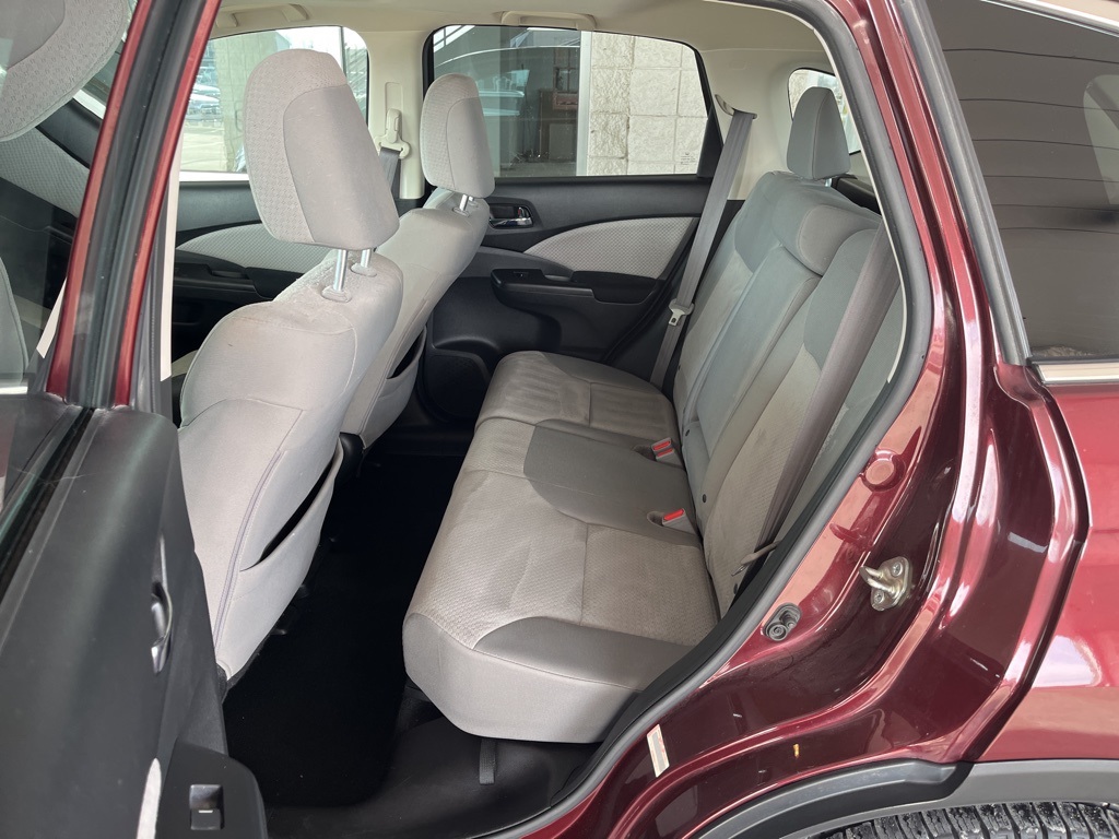 2016 Honda CR-V EX Basque Red Pearl II 4D Sport Utility 2.4L I4 DOHC 16V i-VTEC CVT FWD EX This vehicle comes well equipped with 17" Alloy Wheels, 4-Wheel Disc Brakes, 5.048 Axle Ratio, 6 Speakers, ABS brakes, Air Conditioning, Alloy wheels, AM/FM radio, AM/FM/CD Audio System w/6 Speakers, Brake assist, Bumpers: body-color, CD player, Cloth Seat Trim, Compass, Delay-off headlights, Driver door bin, Driver vanity mirror, Dual front impact airbags, Dual front side impact airbags, Electronic Stability Control, Exterior Parking Camera Rear, Four wheel independent suspension, Front anti-roll bar, Front Bucket Seats, Front Center Armrest, Front fog lights, Front reading lights, Heated Front Bucket Seats, Heated front seats, Illuminated entry, Low tire pressure warning, Occupant sensing airbag, Outside temperature display, Overhead airbag, Overhead console, Panic alarm, Passenger door bin, Passenger vanity mirror, Power door mirrors, Power driver seat, Power moonroof, Power steering, Power windows, Radio data system, Rear anti-roll bar, Rear seat center armrest, Rear window defroster, Rear window wiper, Remote keyless entry, Security system, Speed control, Speed-sensing steering, Speed-Sensitive Wipers, Split folding rear seat, Steering wheel mounted audio controls, Tachometer, Telescoping steering wheel, Tilt steering wheel, Traction control, Trip computer, and Variably intermittent wipers.