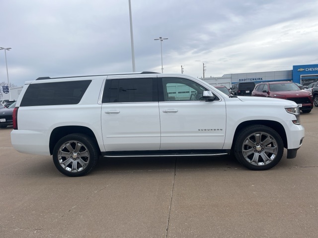 CARFAX One-Owner. Navigation, Moonroof, Leather, Rear Entertainment, Heated and cooled seats, Heated seats, Heated steering wheel, XM SIRIUS Radio, Local trade, Shottenkirk Certified, Fully Serviced and Detailed, Bluetooth, Rear Back Up Camera, Three rows of seating, Power driver's seat, Power passenger seat, Memory seats, Blind spot indicator, Apple Car Play, LCD display screen, Onstar, Free Carfax history report, Steering Wheel Controls, Alloy Wheels, Leather Interior, Power Sunroof/Moonroof, Lane Monitor, Suburban Premier, 4D Sport Utility, EcoTec3 5.3L V8, 6-Speed Automatic Electronic with Overdrive, 4WD, Summit White, Cocoa/Dune w/Perforated Leather-Appointed Seat Trim, 10 Speakers, 1st & 2nd Row Color-Keyed Carpeted Floor Mats, 3.08 Rear Axle Ratio, 3rd Row 60/40 Power Fold Split-Bench, 3rd Row DVD Screen, 3rd row seats: split-bench, 4-Wheel Antilock Disc Brakes, 4-Wheel Disc Brakes, 6-Way Power Front Passenger Seat Adjuster, ABS brakes, Adaptive suspension, Adjustable pedals, Air Conditioning, Alloy wheels, AM/FM radio: SiriusXM, Apple CarPlay, Auto High-beam Headlights, Auto-dimming door mirrors, Auto-Dimming Inside Rear-View Mirror, Auto-dimming Rear-View mirror, Automatic temperature control, Black Assist Steps, Bodyside moldings, Bose Centerpoint Premium 10-Speaker Surround Sound, Brake assist, Bumpers: body-color, CD player, Color-Keyed Carpeting Floor Covering, Compass, Delay-off headlights, Driver door bin, Driver Inboard & Front Passenger Airbags, Driver vanity mirror, Dual front impact airbags, Dual front side impact airbags, Electronic Cruise Control w/Set & Resume Speed, Electronic stabiliy control, Emergency communication system: OnStar Guidance, Enhanced Driver Alert Package, Enhanced Driver Information Center, Enhanced Driver Information Center (DISC), Extended-Range Remote Keyless Entry, Exterior Parking Camera Rear, Floor Console w/Storage Area, Fog Lamps, Forward Collision Alert Sensor Indicator, Front & Rear Parking Assist, Front anti-roll bar, Front Bucket Seats, Front Center Armrest, Front dual zone A/C, Front fog lights, Front reading lights, Front wheel independent suspension, Fully automatic headlights, Garage door transmitter, Hands Free Power Liftgate, HD Radio, Head-Up Display, Heated & Vented Driver & Front Passenger Seats, Heated & Vented Front Reclining Bucket Seats, Heated 2nd Row Outboard Seats, Heated door mirrors, Heated front seats, Heated Leather Wrapped Steering Wheel, Heated rear seats, Heated steering wheel, High-Intensity Discharge Headlights, Illuminated entry, Intellibeam Headlamps w/Automatic High Beam On/Off, Lane Keep Assist, Leather Shift Knob, License Plate Front Mounting Package, Low Speed Forward Automatic Braking, Low tire pressure warning, Magnetic Ride Control Suspension Package, Memory seat, Memory Settings, Navigation System, NavTraffic, Occupant sensing airbag, OnStar Basic Plan For 5 Years, Outside temperature display, Overhead airbag, Overhead console, Panic alarm, Passenger door bin, Passenger vanity mirror, Passive Entry System, Pedal memory, Perforated Leather-Appointed Seat Trim, Power door mirrors, Power driver seat, Power Folding & Adjustable Heated Outside Mirrors, Power Liftgate, Power passenger seat, Power Release 2nd Row Bucket Seats, Power steering, Power Tilt & Telescoping Steering Column, Power Tilt-Sliding Sunroof w/Express-Open/Close, Power windows, Power-Adjustable Accelerator & Brake Pedals, Preferred Equipment Group 1LZ, Push Button Keyless Start, Radio: Chevrolet MyLink AM/FM Stereo w/Navigation, Rain sensing wipers, Rear air conditioning, Rear anti-roll bar, Rear audio controls, Rear Cross-Traffic Alert Sensor Indicator, Rear reading lights, Rear Seat Entertainment System, Rear window defroster, Rear window wiper, Remote keyless entry, Remote Vehicle Start, Roof rack: rails only, Roof-Mounted Luggage Rack Side Rails, Safety Alert Driver Seat, Security system, Side Blind Zone Alert w/Lane Change Alert, Single-Slot CD/MP3 Player, SiriusXM Satellit