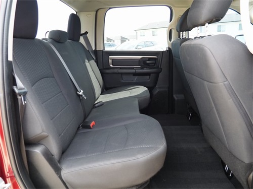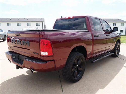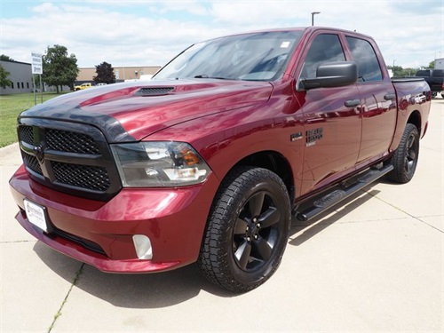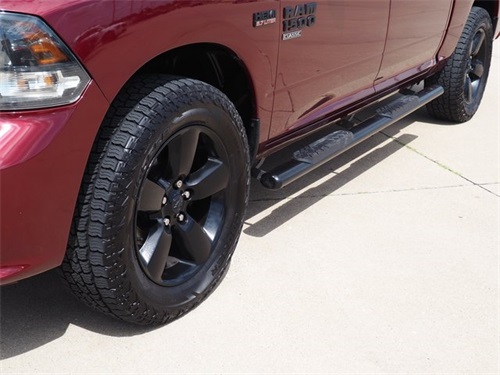 2019 Ram 1500 Classic Express Delmonico Red Pearlcoat 4D Crew Cab HEMI 5.7L V8 Multi Displacement VVT 8-Speed Automatic 4WD Express This vehicle comes well equipped with Express Value Package (1-Yr SiriusXM Radio Service, 40/20/40 Split Bench Seat, 5.0" Touchscreen Display, Carpet Floor Covering, Center Hub, Cloth 40/20/40 Bench Seat, For More Info, Call 800-643-2112, Front Armrest w/3 Cupholders, Front Floor Mats, GPS Antenna Input, Integrated Voice Command w/Bluetooth, Manual Adjust Seats, Media Hub (USB, AUX), No Satellite Coverage w/AK/HI, Overhead Console, Radio: Uconnect 3 w/5" Display, Rear Floor Mats, Rear Folding Seat, Rear View Day/Night Mirror, Remote Keyless Entry w/All-Secure, Remote USB Port - Charge Only, SiriusXM Satellite Radio, Storage Tray, Temperature & Compass Gauge, and Wheels: 20" x 8" Aluminum Chrome Clad), 17" x 7" Steel Wheels, 3.21 Rear Axle Ratio, 3.55 Rear Axle Ratio, 4-Wheel Disc Brakes, 6 Speakers, ABS brakes, Active Grille Shutters, Air Conditioning, AM/FM radio, Auto-dimming Rear-View mirror, Black Exterior Mirrors, Black Seats, Brake assist, Delay-off headlights, Driver door bin, Dual front impact airbags, Dual front side impact airbags, Electronic Shift, Electronic Stability Control, Exterior Mirrors w/Heating Element, Front anti-roll bar, Front Center Armrest, Front wheel independent suspension, Fully automatic headlights, Heated door mirrors, Heavy Duty Vinyl 40/20/40 Split Bench Seat, Low tire pressure warning, Occupant sensing airbag, Overhead airbag, ParkView Rear Back-Up Camera, Passenger door bin, Power door mirrors, Power steering, Power windows, Radio data system, Radio: 3.0, Rear anti-roll bar, Rear seat center armrest, Rear step bumper, Speed control, Tachometer, Tilt steering wheel, Tip Start, Traction control, Trailer Brake Control, Variably intermittent wipers, Voltmeter, and Wheels: 20" x 8" Semi-Gloss Black Aluminum.