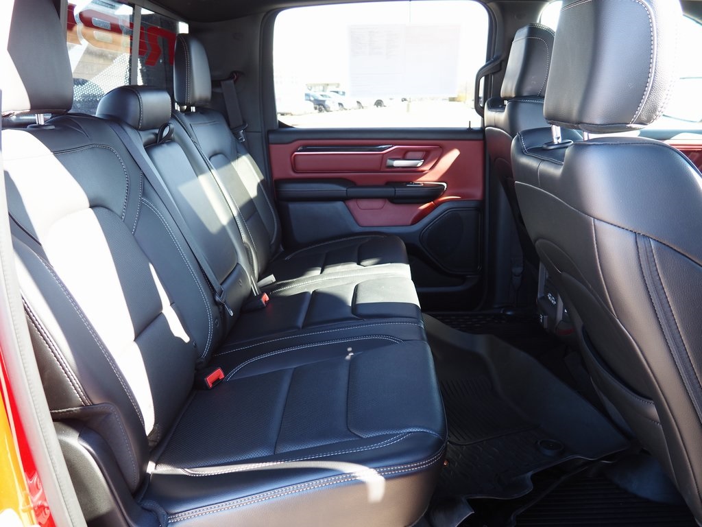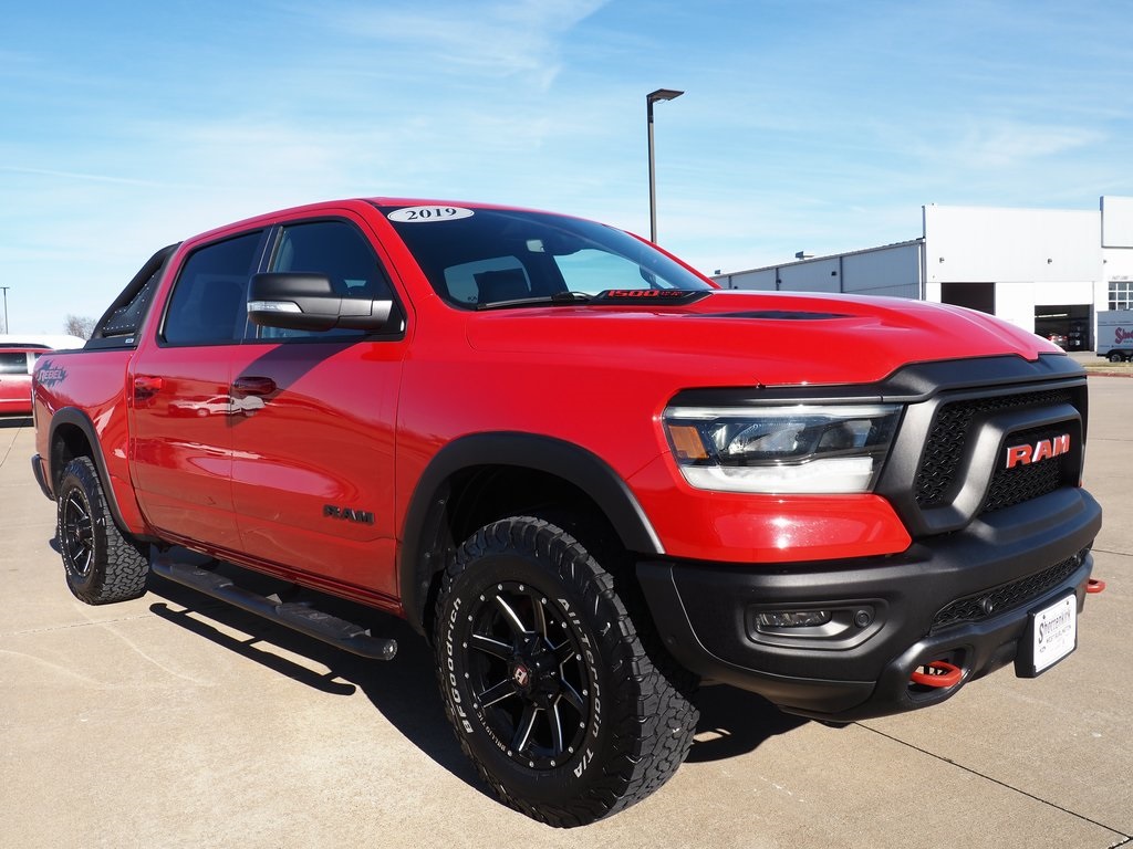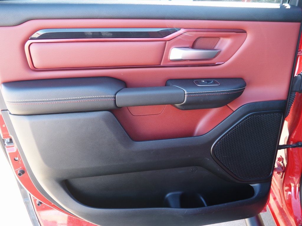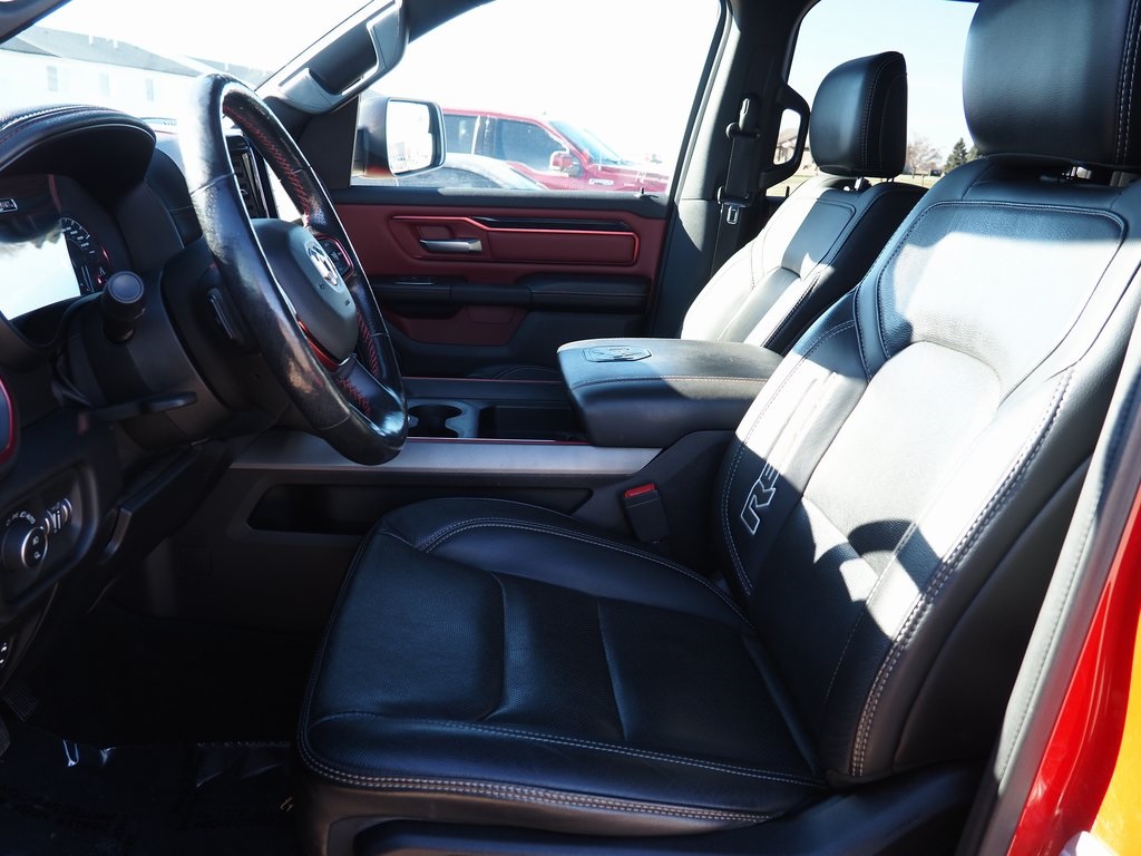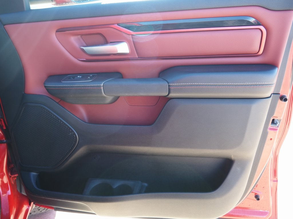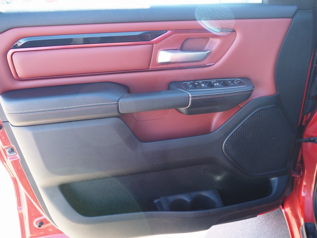 2019 Ram 1500 Rebel Flame Red Clearcoat 4D Crew Cab HEMI 5.7L V8 Multi Displacement VVT 8-Speed Automatic 4WD Rebel This vehicle comes well equipped with Quick Order Package 25W Rebel, Rebel 12A (1-Year SiriusXM Radio Service, 9 Amplified Speakers w/Subwoofer, Apple CarPlay, For More Info, Call 800-643-2112, Google Android Auto, GPS Antenna Input, Heated Front Seats, Heated Steering Wheel, Power 8-Way Driver & Passenger Seats, and SiriusXM Satellite Radio), Rebel Level 2 Equipment Group (115V Auxiliary Rear Power Outlet, 2 USB Full Function/Charge Only Media Hub, Auto-Dimming Exterior Driver Mirror, Foam Bottle Insert (Door Trim Panel), ParkSense Front/Rear Park Assist w/Stop, Power Adjustable Pedals, Power Heated Fold Away Mirrors, Power-Folding Mirrors, Rain Sensitive Windshield Wipers, Rear Dome w/On/Off Switch Lamp, Rear Underseat Compartment Storage, Rear Window Defroster, Remote Proximity Keyless Entry, Remote Start System, Single Disc Remote CD Player, and Universal Garage Door Opener), 3.92 Rear Axle Ratio, 4-Wheel Disc Brakes, 48V Belt Starter Generator, 6 Speakers, ABS brakes, Air Conditioning, Alloy wheels, AM/FM radio: SiriusXM, Blind Spot & Cross Path Detection, Brake assist, Cloth/Vinyl Low Back Bucket Seats, Compass, Delay-off headlights, Dome Dual LED Reading Lamp, Driver door bin, Dual front impact airbags, Dual front side impact airbags, Dual Function Tailgate, Dual-Pane Panoramic Sunroof, Electronic Stability Control, Front anti-roll bar, Front Bucket Seats, Front Center Armrest w/Storage, Front fog lights, Front reading lights, Front wheel independent suspension, Fully automatic headlights, Heated door mirrors, Illuminated entry, Leather steering wheel, Low tire pressure warning, Occupant sensing airbag, Outside temperature display, Overhead airbag, Overhead console, Overhead LED Lamps, Panic alarm, ParkView Rear Back-Up Camera, Passenger door bin, Passenger vanity mirror, Power door mirrors, Power driver seat, Power steering, Power windows, Premium Overhead Console, Radio data system, Radio: Uconnect 12 w/Navigation (DISC), Radio: Uconnect 3 w/5" Display, Rear anti-roll bar, Rear seat center armrest, Rear step bumper, Remote keyless entry, Speed control, Split folding rear seat, Spray In Bedliner, Steering wheel mounted audio controls, Tachometer, Telescoping steering wheel, Tilt steering wheel, Traction control, Trailer Brake Control, Trip computer, Variably intermittent wipers, Voltmeter, and Wheels: 18" x 8" Painted Black.