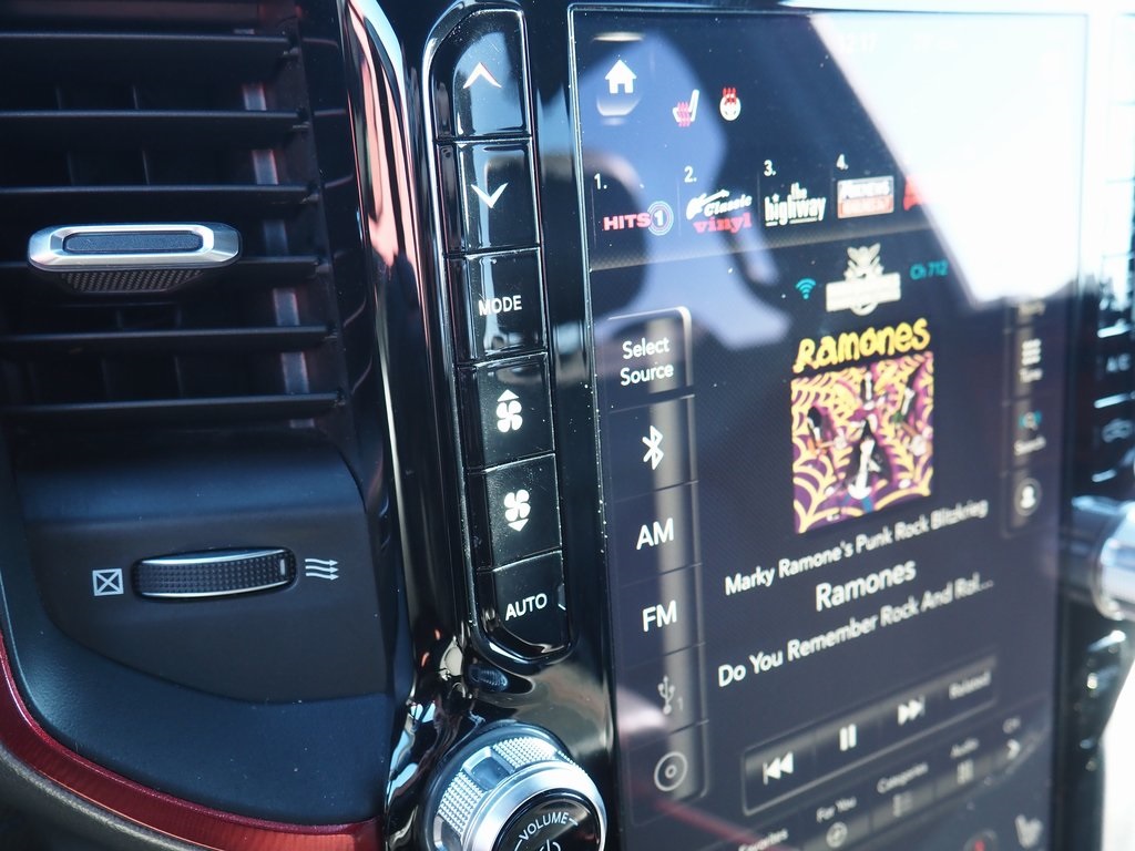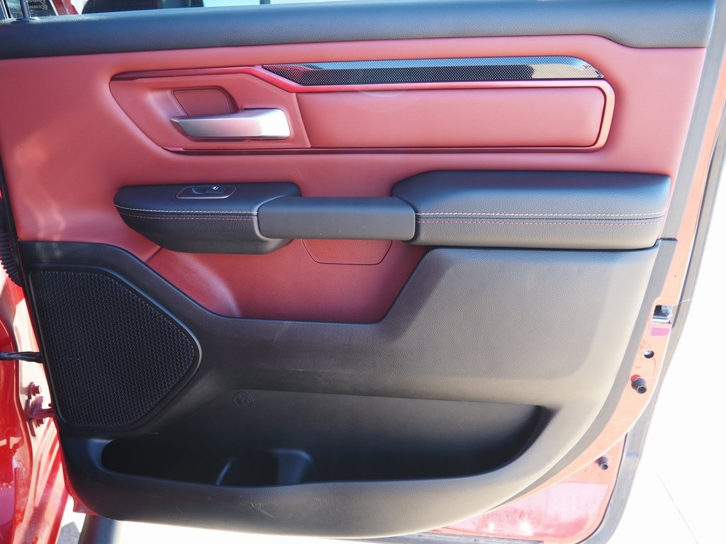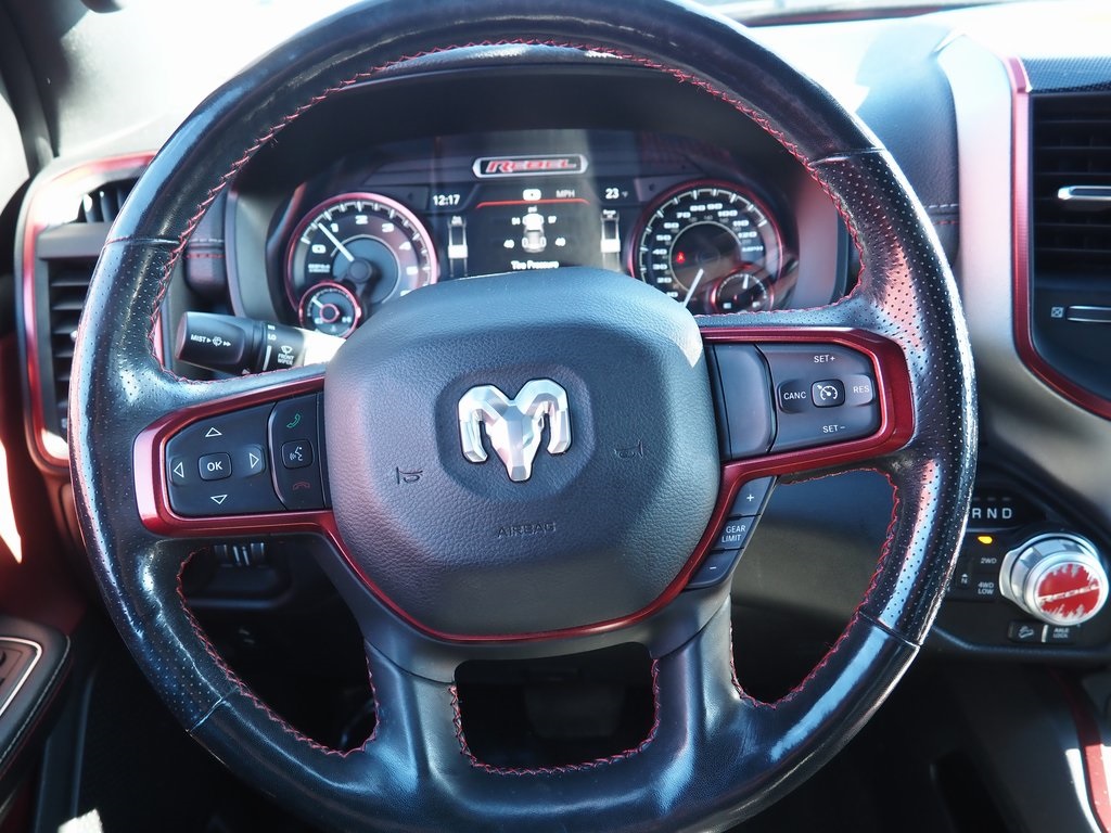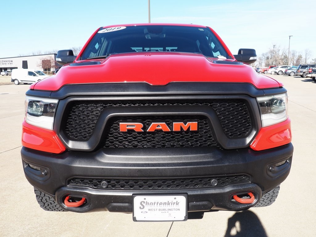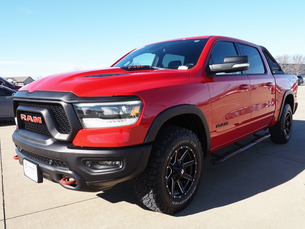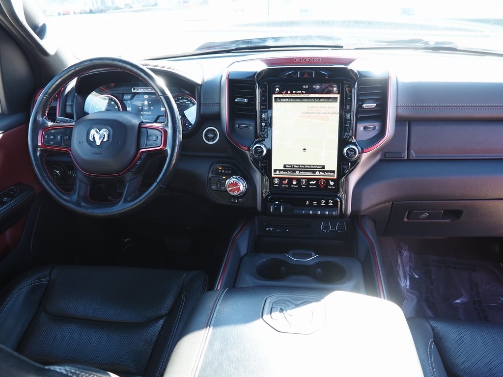 2019 Ram 1500 Rebel Flame Red Clearcoat 4D Crew Cab HEMI 5.7L V8 Multi Displacement VVT 8-Speed Automatic 4WD Rebel This vehicle comes well equipped with Quick Order Package 25W Rebel, Rebel 12A (1-Year SiriusXM Radio Service, 9 Amplified Speakers w/Subwoofer, Apple CarPlay, For More Info, Call 800-643-2112, Google Android Auto, GPS Antenna Input, Heated Front Seats, Heated Steering Wheel, Power 8-Way Driver & Passenger Seats, and SiriusXM Satellite Radio), Rebel Level 2 Equipment Group (115V Auxiliary Rear Power Outlet, 2 USB Full Function/Charge Only Media Hub, Auto-Dimming Exterior Driver Mirror, Foam Bottle Insert (Door Trim Panel), ParkSense Front/Rear Park Assist w/Stop, Power Adjustable Pedals, Power Heated Fold Away Mirrors, Power-Folding Mirrors, Rain Sensitive Windshield Wipers, Rear Dome w/On/Off Switch Lamp, Rear Underseat Compartment Storage, Rear Window Defroster, Remote Proximity Keyless Entry, Remote Start System, Single Disc Remote CD Player, and Universal Garage Door Opener), 3.92 Rear Axle Ratio, 4-Wheel Disc Brakes, 48V Belt Starter Generator, 6 Speakers, ABS brakes, Air Conditioning, Alloy wheels, AM/FM radio: SiriusXM, Blind Spot & Cross Path Detection, Brake assist, Cloth/Vinyl Low Back Bucket Seats, Compass, Delay-off headlights, Dome Dual LED Reading Lamp, Driver door bin, Dual front impact airbags, Dual front side impact airbags, Dual Function Tailgate, Dual-Pane Panoramic Sunroof, Electronic Stability Control, Front anti-roll bar, Front Bucket Seats, Front Center Armrest w/Storage, Front fog lights, Front reading lights, Front wheel independent suspension, Fully automatic headlights, Heated door mirrors, Illuminated entry, Leather steering wheel, Low tire pressure warning, Occupant sensing airbag, Outside temperature display, Overhead airbag, Overhead console, Overhead LED Lamps, Panic alarm, ParkView Rear Back-Up Camera, Passenger door bin, Passenger vanity mirror, Power door mirrors, Power driver seat, Power steering, Power windows, Premium Overhead Console, Radio data system, Radio: Uconnect 12 w/Navigation (DISC), Radio: Uconnect 3 w/5" Display, Rear anti-roll bar, Rear seat center armrest, Rear step bumper, Remote keyless entry, Speed control, Split folding rear seat, Spray In Bedliner, Steering wheel mounted audio controls, Tachometer, Telescoping steering wheel, Tilt steering wheel, Traction control, Trailer Brake Control, Trip computer, Variably intermittent wipers, Voltmeter, and Wheels: 18" x 8" Painted Black.