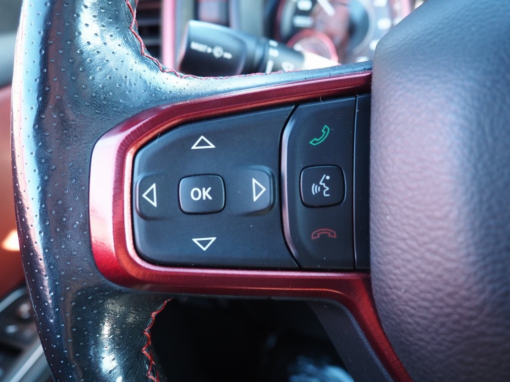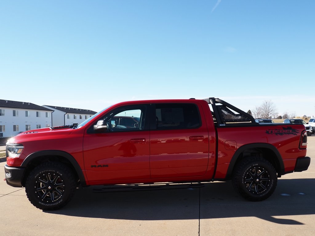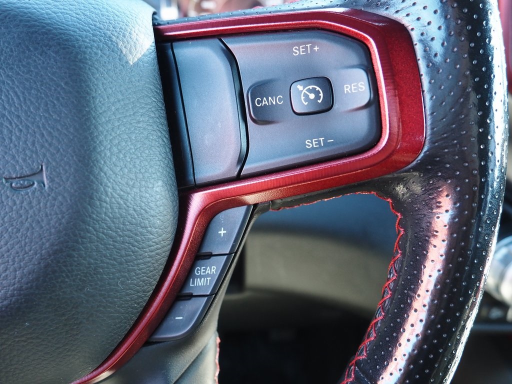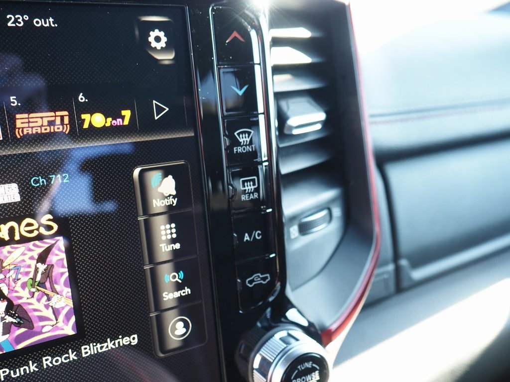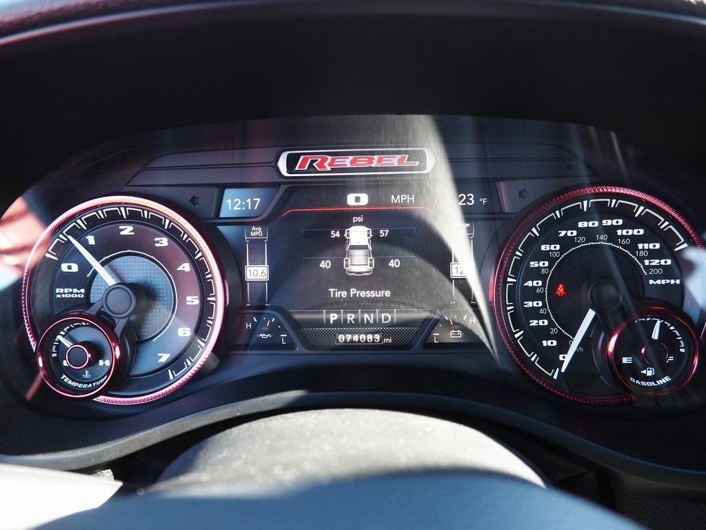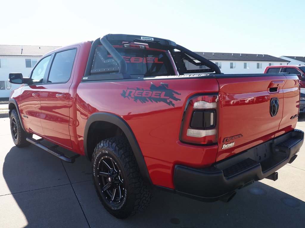 2019 Ram 1500 Rebel Flame Red Clearcoat 4D Crew Cab HEMI 5.7L V8 Multi Displacement VVT 8-Speed Automatic 4WD Rebel This vehicle comes well equipped with Quick Order Package 25W Rebel, Rebel 12A (1-Year SiriusXM Radio Service, 9 Amplified Speakers w/Subwoofer, Apple CarPlay, For More Info, Call 800-643-2112, Google Android Auto, GPS Antenna Input, Heated Front Seats, Heated Steering Wheel, Power 8-Way Driver & Passenger Seats, and SiriusXM Satellite Radio), Rebel Level 2 Equipment Group (115V Auxiliary Rear Power Outlet, 2 USB Full Function/Charge Only Media Hub, Auto-Dimming Exterior Driver Mirror, Foam Bottle Insert (Door Trim Panel), ParkSense Front/Rear Park Assist w/Stop, Power Adjustable Pedals, Power Heated Fold Away Mirrors, Power-Folding Mirrors, Rain Sensitive Windshield Wipers, Rear Dome w/On/Off Switch Lamp, Rear Underseat Compartment Storage, Rear Window Defroster, Remote Proximity Keyless Entry, Remote Start System, Single Disc Remote CD Player, and Universal Garage Door Opener), 3.92 Rear Axle Ratio, 4-Wheel Disc Brakes, 48V Belt Starter Generator, 6 Speakers, ABS brakes, Air Conditioning, Alloy wheels, AM/FM radio: SiriusXM, Blind Spot & Cross Path Detection, Brake assist, Cloth/Vinyl Low Back Bucket Seats, Compass, Delay-off headlights, Dome Dual LED Reading Lamp, Driver door bin, Dual front impact airbags, Dual front side impact airbags, Dual Function Tailgate, Dual-Pane Panoramic Sunroof, Electronic Stability Control, Front anti-roll bar, Front Bucket Seats, Front Center Armrest w/Storage, Front fog lights, Front reading lights, Front wheel independent suspension, Fully automatic headlights, Heated door mirrors, Illuminated entry, Leather steering wheel, Low tire pressure warning, Occupant sensing airbag, Outside temperature display, Overhead airbag, Overhead console, Overhead LED Lamps, Panic alarm, ParkView Rear Back-Up Camera, Passenger door bin, Passenger vanity mirror, Power door mirrors, Power driver seat, Power steering, Power windows, Premium Overhead Console, Radio data system, Radio: Uconnect 12 w/Navigation (DISC), Radio: Uconnect 3 w/5" Display, Rear anti-roll bar, Rear seat center armrest, Rear step bumper, Remote keyless entry, Speed control, Split folding rear seat, Spray In Bedliner, Steering wheel mounted audio controls, Tachometer, Telescoping steering wheel, Tilt steering wheel, Traction control, Trailer Brake Control, Trip computer, Variably intermittent wipers, Voltmeter, and Wheels: 18" x 8" Painted Black.