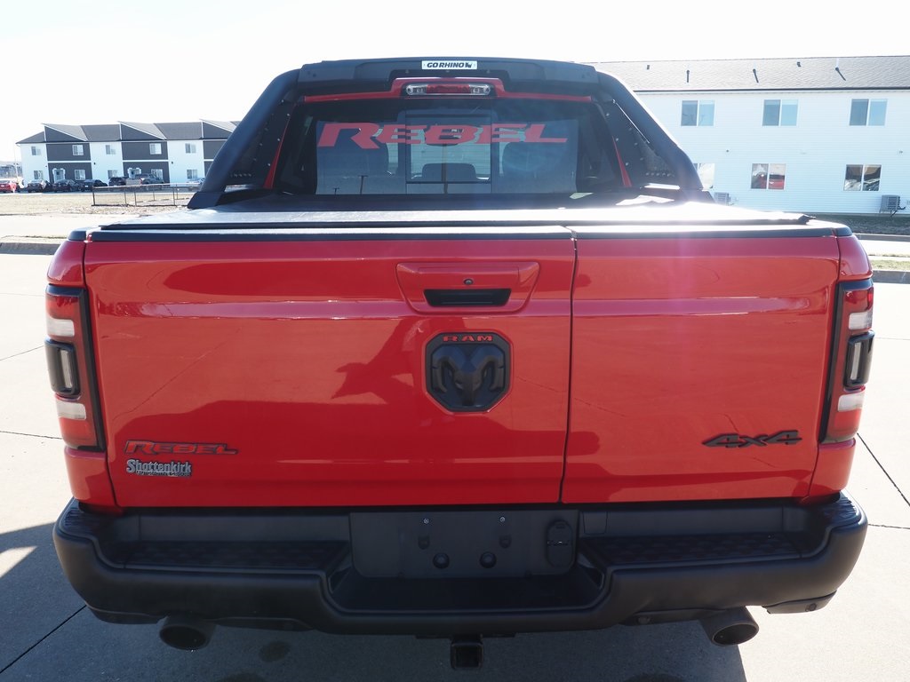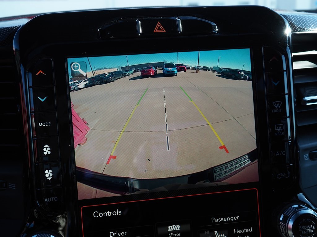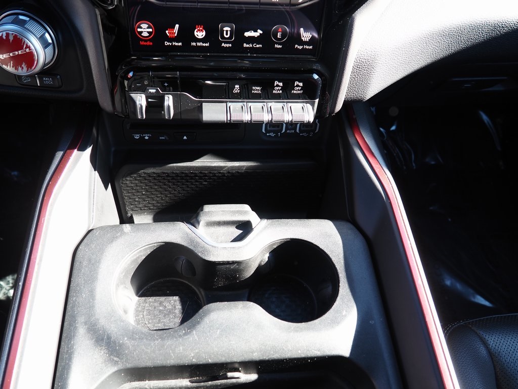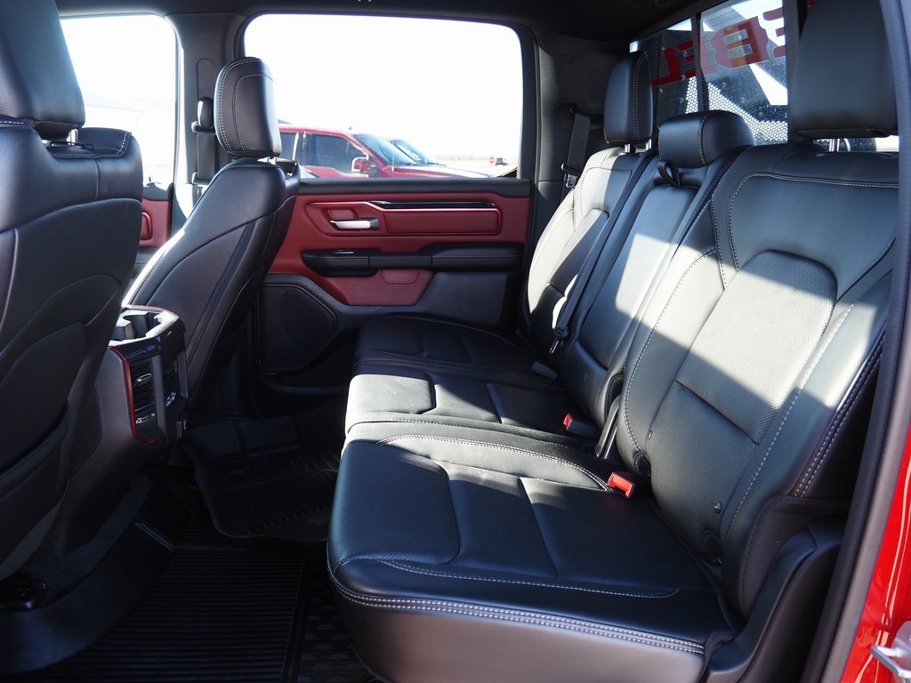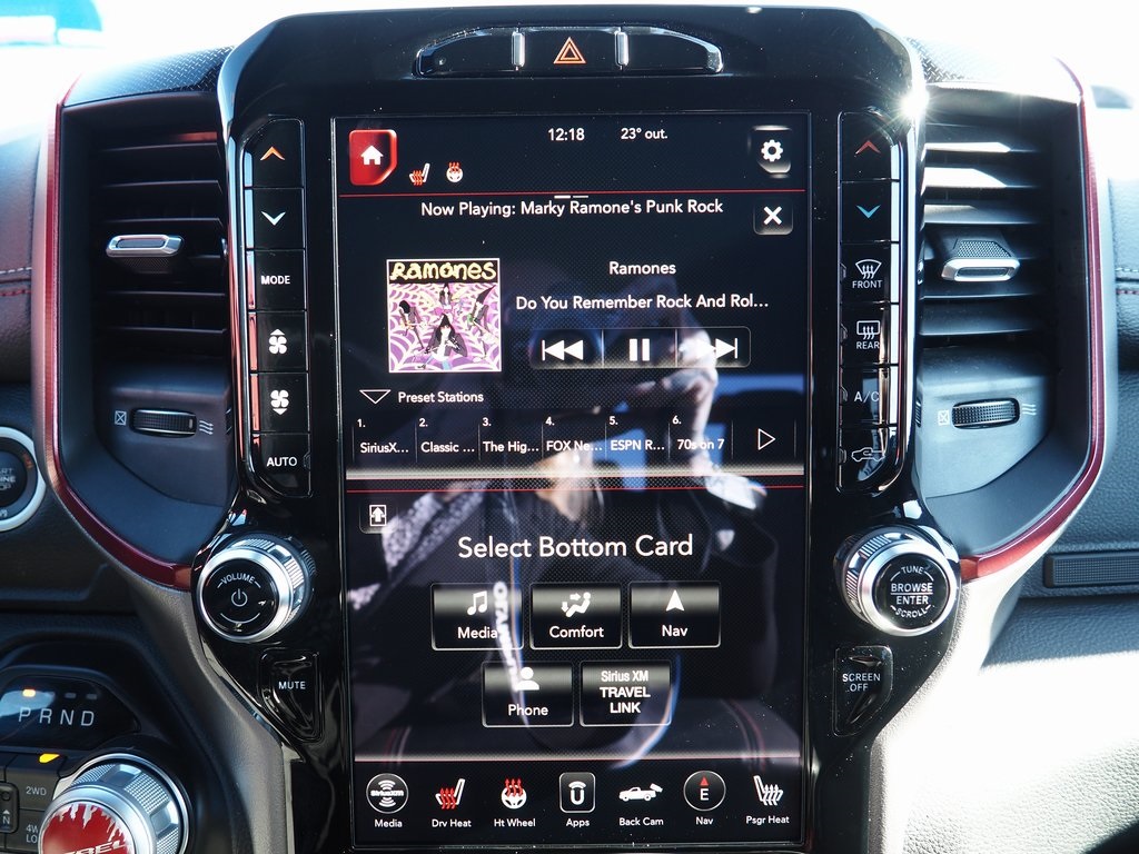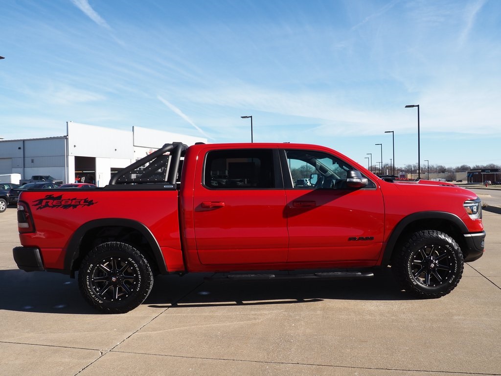 2019 Ram 1500 Rebel Flame Red Clearcoat 4D Crew Cab HEMI 5.7L V8 Multi Displacement VVT 8-Speed Automatic 4WD Rebel This vehicle comes well equipped with Quick Order Package 25W Rebel, Rebel 12A (1-Year SiriusXM Radio Service, 9 Amplified Speakers w/Subwoofer, Apple CarPlay, For More Info, Call 800-643-2112, Google Android Auto, GPS Antenna Input, Heated Front Seats, Heated Steering Wheel, Power 8-Way Driver & Passenger Seats, and SiriusXM Satellite Radio), Rebel Level 2 Equipment Group (115V Auxiliary Rear Power Outlet, 2 USB Full Function/Charge Only Media Hub, Auto-Dimming Exterior Driver Mirror, Foam Bottle Insert (Door Trim Panel), ParkSense Front/Rear Park Assist w/Stop, Power Adjustable Pedals, Power Heated Fold Away Mirrors, Power-Folding Mirrors, Rain Sensitive Windshield Wipers, Rear Dome w/On/Off Switch Lamp, Rear Underseat Compartment Storage, Rear Window Defroster, Remote Proximity Keyless Entry, Remote Start System, Single Disc Remote CD Player, and Universal Garage Door Opener), 3.92 Rear Axle Ratio, 4-Wheel Disc Brakes, 48V Belt Starter Generator, 6 Speakers, ABS brakes, Air Conditioning, Alloy wheels, AM/FM radio: SiriusXM, Blind Spot & Cross Path Detection, Brake assist, Cloth/Vinyl Low Back Bucket Seats, Compass, Delay-off headlights, Dome Dual LED Reading Lamp, Driver door bin, Dual front impact airbags, Dual front side impact airbags, Dual Function Tailgate, Dual-Pane Panoramic Sunroof, Electronic Stability Control, Front anti-roll bar, Front Bucket Seats, Front Center Armrest w/Storage, Front fog lights, Front reading lights, Front wheel independent suspension, Fully automatic headlights, Heated door mirrors, Illuminated entry, Leather steering wheel, Low tire pressure warning, Occupant sensing airbag, Outside temperature display, Overhead airbag, Overhead console, Overhead LED Lamps, Panic alarm, ParkView Rear Back-Up Camera, Passenger door bin, Passenger vanity mirror, Power door mirrors, Power driver seat, Power steering, Power windows, Premium Overhead Console, Radio data system, Radio: Uconnect 12 w/Navigation (DISC), Radio: Uconnect 3 w/5" Display, Rear anti-roll bar, Rear seat center armrest, Rear step bumper, Remote keyless entry, Speed control, Split folding rear seat, Spray In Bedliner, Steering wheel mounted audio controls, Tachometer, Telescoping steering wheel, Tilt steering wheel, Traction control, Trailer Brake Control, Trip computer, Variably intermittent wipers, Voltmeter, and Wheels: 18" x 8" Painted Black.