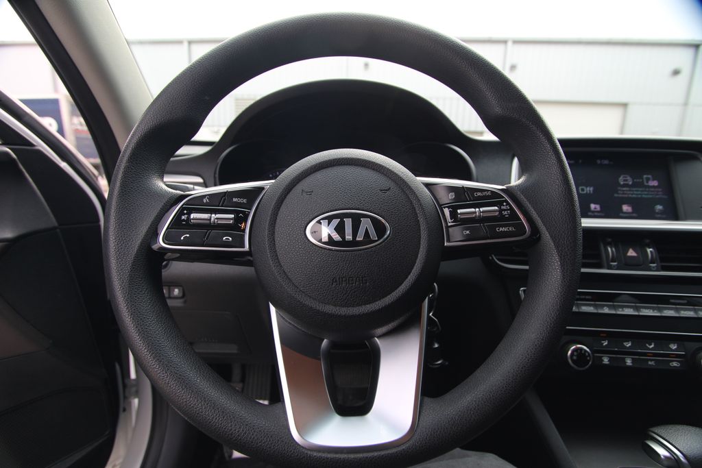 2020 Kia Optima LX Snow White Pearl 4D Sedan 2.4L I4 DGI DOHC 6-Speed Automatic with Sportmatic FWD LX This vehicle comes well equipped with LX Brown Interior Color Package, 4-Wheel Disc Brakes, 6 Speakers, 6.5J x 16" Silver Alloy Wheels, ABS brakes, Air Conditioning, Alloy wheels, AM/FM radio, Anti-whiplash front head restraints, Apple CarPlay & Android Auto, Auto High-beam Headlights, Brake assist, Bumpers: body-color, Carpet Cargo Mat, Carpet Floor Mats, Cloth Seat Trim, Delay-off headlights, Driver door bin, Driver vanity mirror, Dual front impact airbags, Dual front side impact airbags, Electronic Stability Control, Four wheel independent suspension, Front anti-roll bar, Front Bucket Seats, Front Center Armrest, Front reading lights, Fully automatic headlights, Heated door mirrors, Illuminated entry, Knee airbag, Low tire pressure warning, Occupant sensing airbag, Outside temperature display, Overhead airbag, Overhead console, Panic alarm, Passenger door bin, Passenger vanity mirror, Power door mirrors, Power steering, Power windows, Radio data system, Radio: AM/FM/MP3 Audio System, Rear anti-roll bar, Rear seat center armrest, Rear window defroster, Remote keyless entry, Security system, Speed control, Speed-sensing steering, Split folding rear seat, Steering wheel mounted audio controls, Tachometer, Telescoping steering wheel, Tilt steering wheel, Traction control, Trip computer, Turn signal indicator mirrors, and Variably intermittent wipers.