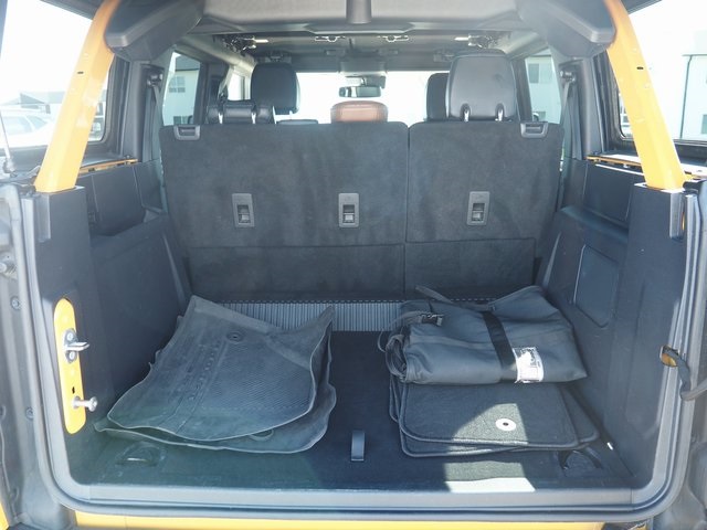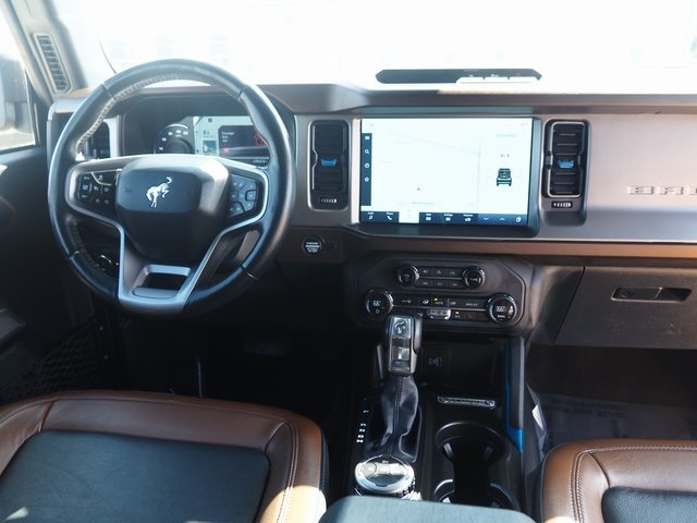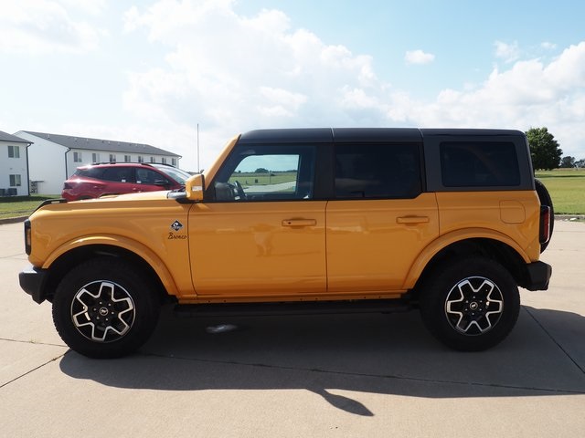 2021 Ford Bronco Outer Banks Cyber Orange Metallic Tricoat 4D Sport Utility 2.7L EcoBoost V6 10-Speed Automatic 4WD Outer Banks This vehicle comes well equipped with ABS brakes, Compass, Heated door mirrors, Illuminated entry, Low tire pressure warning, Remote keyless entry, and Traction control ABS brakes, Compass, Heated door mirrors, Illuminated entry, Low tire pressure warning, Remote keyless entry, Traction control, 4-Wheel Disc Brakes, 6 Speakers, Air Conditioning, AM/FM radio: SiriusXM with 360L, AM/FM Stereo, Auto High-beam Headlights, Brake assist, Delay-off headlights, Driver door bin, Driver vanity mirror, Dual front impact airbags, Dual front side impact airbags, Emergency communication system: 911 Assist, Exterior Parking Camera Rear, Front anti-roll bar, Front Bucket Seats, Front Center Armrest, Front reading lights, Front wheel independent suspension, Fully automatic headlights, Integrated roll-over protection, Occupant sensing airbag, Outside temperature display, Overhead airbag, Overhead console, Panic alarm, Passenger door bin, Passenger vanity mirror, Power door mirrors, Power steering, Power windows, Radio data system, Security system, SiriusXM Radio w/360L, Speed control, Split folding rear seat, Steering wheel mounted audio controls, SYNC 4, Tachometer, Telescoping steering wheel, Tilt steering wheel, Trip computer, and Variably intermittent wipers.