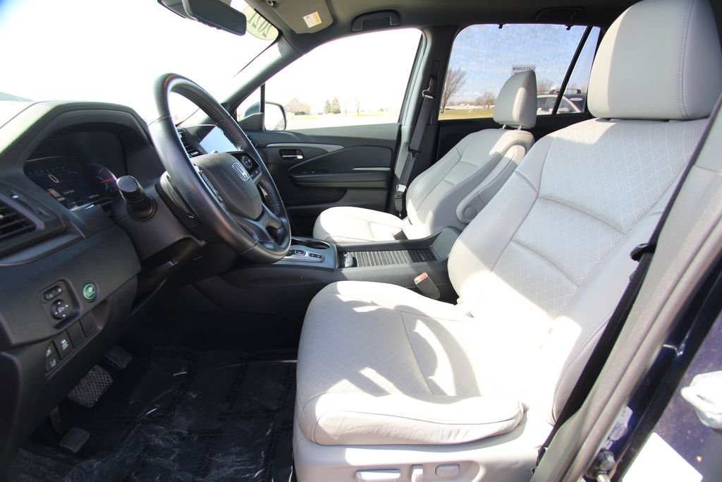 2021 Honda Passport EX-L Obsidian Blue Pearl 4D Sport Utility 3.5L V6 24V SOHC i-VTEC 9-Speed Automatic AWD EX-L This vehicle comes well equipped with 4-Wheel Disc Brakes, 4.334 Axle Ratio, 7 Speakers, A/V remote: CabinControl, ABS brakes, Air Conditioning, Alloy wheels, AM/FM radio: SiriusXM, Apple CarPlay/Android Auto, Auto High-beam Headlights, Auto-dimming Rear-View mirror, Automatic temperature control, Blind Spot Information (BSI) System warning, Brake assist, Bumpers: body-color, Delay-off headlights, Driver door bin, Driver vanity mirror, Driver's Seat Mounted Armrest, Dual front impact airbags, Dual front side impact airbags, Electronic Stability Control, Emergency communication system: HondaLink Assist, Exterior Parking Camera Rear, Forward collision: Collision Mitigation Braking System (CMBS) + FCW mitigation, Four wheel independent suspension, Front anti-roll bar, Front Bucket Seats, Front Center Armrest, Front dual zone A/C, Front fog lights, Front reading lights, Fully automatic headlights, Garage door transmitter: HomeLink, Heated door mirrors, Heated Front Bucket Seats, Heated front seats, Illuminated entry, Lane departure: Lane Keeping Assist System (LKAS) active, Leather-Trimmed Seats, Low tire pressure warning, Memory seat, Occupant sensing airbag, Outside temperature display, Overhead airbag, Overhead console, Panic alarm, Passenger door bin, Passenger seat mounted armrest, Passenger vanity mirror, Power door mirrors, Power driver seat, Power Liftgate, Power moonroof, Power passenger seat, Power steering, Power windows, Radio data system, Radio: 215-Watt Audio System w/7 Speakers, Rear air conditioning, Rear anti-roll bar, Rear reading lights, Rear seat center armrest, Rear window defroster, Rear window wiper, Remote keyless entry, Security system, Speed control, Speed-sensing steering, Split folding rear seat, Spoiler, Steering wheel mounted audio controls, Tachometer, Telescoping steering wheel, Tilt steering wheel, Traction control, Trip computer, Turn signal indicator mirrors, Variably intermittent wipers, and Wheels: 20" Split-Spoke Pewter Gray Alloy.