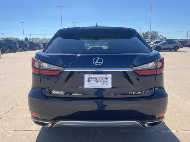 CARFAX One-Owner. Clean CARFAX. Navigation, Moonroof, Leather, Heated seats, Local trade, Shottenkirk Certified, Fully Serviced and Detailed, Bluetooth, Power driver's seat, Power passenger seat, Balance of factory warranty, Free Carfax history report, Steering Wheel Controls, Alloy Wheels, Leather Interior, Power Sunroof/Moonroof, Lane Monitor, RX 350, 4D Sport Utility, 3.5L V6 DOHC 24V, 8-Speed Automatic, AWD, Nightfall Mica, Birch w/NuLuxe Seat Trim, 12.3" Navigation System, 3.329 Axle Ratio, 4-Wheel Disc Brakes, 9 Speakers, ABS brakes, Air Conditioning, Alloy wheels, AM/FM radio: SiriusXM, AM/FM/CD Radio, Anti-whiplash front head restraints, Apple CarPlay/Android Auto, Auto High-beam Headlights, Auto Recirculation Air Conditioner, Auto-dimming Rear-View mirror, Automatic temperature control, Brake assist, Bumpers: body-color, CD player, Compass, Delay-off headlights, Driver door bin, Driver vanity mirror, Dual front impact airbags, Dual front side impact airbags, Electronic stabiliy control, Emergency communication system, Exterior Parking Camera Rear, Four wheel independent suspension, Front anti-roll bar, Front Bucket Seats, Front Center Armrest, Front dual zone A/C, Front reading lights, Fully automatic headlights, Garage door transmitter: HomeLink, Genuine wood console insert, Genuine wood door panel insert, Heated door mirrors, Illuminated entry, Knee airbag, Leather Shift Knob, Leather steering wheel, Low tire pressure warning, Luxury Package, Navigation System, NuLuxe Seat Trim, Occupant sensing airbag, Outside temperature display, Overhead airbag, Overhead console, Panic alarm, Passenger door bin, Passenger vanity mirror, Power door mirrors, Power driver seat, Power passenger seat, Power steering, Power windows, Radio data system, Rain sensing wipers, Rear anti-roll bar, Rear reading lights, Rear seat center armrest, Rear side impact airbag, Rear window defroster, Rear window wiper, Remote keyless entry, Security system, Semi-Aniline Leather Seat Trim, Speed control, Speed-sensing steering, Split folding rear seat, Spoiler, Steering wheel mounted audio controls, Tachometer, Telescoping steering wheel, Tilt & Slide Moonroof, Tilt steering wheel, Traction control, Trip computer, Turn signal indicator mirrors, Variably intermittent wipers, Wheels: 20" Super Chrome Machined Finish.