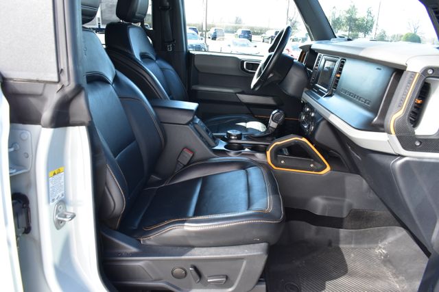 2022 Ford Bronco Gray Badlands 2.3L EcoBoost I-4 10-Speed Automatic 4WD Clean Carfax, Leather, Local Trade, Backup Camera, Bronco Badlands, 10-Speed Automatic, 4WD, Gray, Black Onyx w/Leather-Trimmed/Vinyl Bucket Seats or Leather-Trimmed/Vinyl Bucket Seats w/Blue/Black, 6 Speakers, ABS brakes, Air Conditioning, Alloy wheels, AM/FM radio: SiriusXM with 360L, AM/FM Stereo, Driver door bin, Driver vanity mirror, Dual-Zone Electronic Automatic Temperature Control, Exterior Parking Camera Rear, Front Bucket Seats, Front Center Armrest, Front reading lights, Fully automatic headlights, Heated door mirrors, Illuminated entry, Leather Shift Knob, Low tire pressure warning, Occupant sensing airbag, Outside temperature display, Overhead console, Panic alarm, Passenger door bin, Passenger vanity mirror, Power door mirrors, Power steering, Power windows, Remote keyless entry, SiriusXM Radio w/360L, Speed control, Split folding rear seat, Steering wheel mounted audio controls, SYNC 4, Telescoping steering wheel, Tilt steering wheel, Traction control, Variably intermittent wipers.