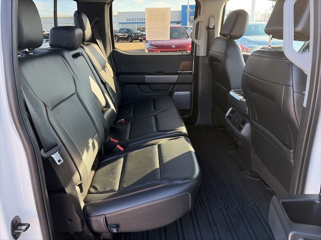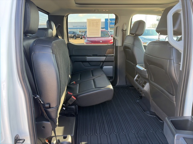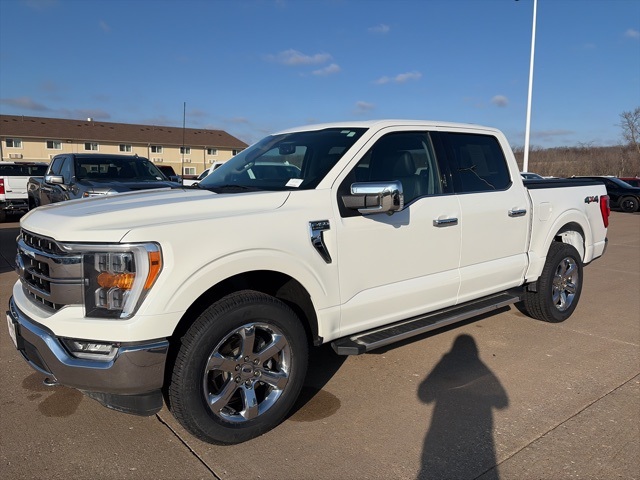 CARFAX One-Owner. Moonroof, Leather, Heated and cooled seats, Heated seats, Heated steering wheel, XM SIRIUS Radio, Push button start, Local trade, Shottenkirk Certified, Fully Serviced and Detailed, Bluetooth, Rear Back Up Camera, Power driver's seat, Power passenger seat, Memory seats, Blind spot indicator, Tow package, Apple Car Play, Balance of factory warranty, Free Carfax history report, Steering Wheel Controls, Alloy Wheels, Leather Interior, Power Sunroof/Moonroof, Lane Monitor, F-150 Lariat, 4D SuperCrew, 3.5L V6 EcoBoost, 10-Speed Automatic, 4WD, Star White Metallic Tri-Coat, Black w/Leather-Trimmed Bucket Seats, 360 Degree Camera, 4-Wheel Disc Brakes, 6" Bright Polished Running Board, 7 Speakers, ABS brakes, Adjustable pedals, Air Conditioning, Alloy wheels, AM/FM radio: SiriusXM with 360L, Auto High-beam Headlights, Auto Start-Stop Removal, Auto-dimming door mirrors, Auto-dimming Rear-View mirror, Automatic temperature control, Bed Utility Package, BoxLink, Brake assist, Bumpers: chrome, Chrome 2-Bar Grille w/4 Minor Bars, Chrome Door & Tailgate Handles w/Body-Color Bezel, Chrome Single-Tip Exhaust, Chrome Skull Caps on Exterior Mirrors, Class IV Trailer Hitch Receiver, Compass, Delay-off headlights, Driver door bin, Driver vanity mirror, Dual front impact airbags, Dual front side impact airbags, Electronic Locking w/3.55 Axle Ratio, Electronic stabiliy control, Emergency communication system: SYNC 4 911 Assist, Equipment Group 501A Mid, Extended Range 36 Gallon Fuel Tank, Exterior Parking Camera Rear, Front anti-roll bar, Front Center Armrest w/Storage, Front dual zone A/C, Front fog lights, Front License Plate Bracket, Front reading lights, Front wheel independent suspension, Fully automatic headlights, GVWR: 7,050 lbs Payload Package, Heated door mirrors, Heated front seats, Illuminated entry, Integrated Trailer Brake Controller, Lariat Chrome Appearance Package, Leather-Trimmed Bucket Seats, LED Box Lighting, Low tire pressure warning, Max Trailer Tow Package, Memory seat, Occupant sensing airbag, Onboard 400W Outlet, Outside temperature display, Overhead airbag, Overhead console, Panic alarm, Passenger door bin, Passenger vanity mirror, Pedal memory, Power door mirrors, Power driver seat, Power passenger seat, Power steering, Power Tailgate, Power windows, Pro Trailer Backup Assist, Radio data system, Radio: AM/FM SiriusXM w/360L, Radio: B&O Sound System by Bang & Olufsen, Rear reading lights, Rear seat center armrest, Rear step bumper, Rear window defroster, Remote keyless entry, Security system, Speed control, Speed-sensing steering, Split folding rear seat, Steering wheel mounted audio controls, SYNC 4 w/Enhanced Voice Recognition, Tachometer, Tailgate Step w/Tailgate Work Surface, Telescoping steering wheel, Tilt steering wheel, Traction control, Tray Style Floor Liner (47W), Trip computer, Turn signal indicator mirrors, Twin Panel Moonroof, Variably intermittent wipers, Ventilated front seats, Voltmeter, Wheels: 20" Chrome-Like PVD, Wireless Charging Pad.