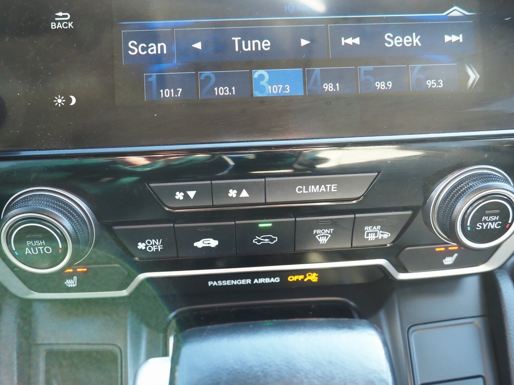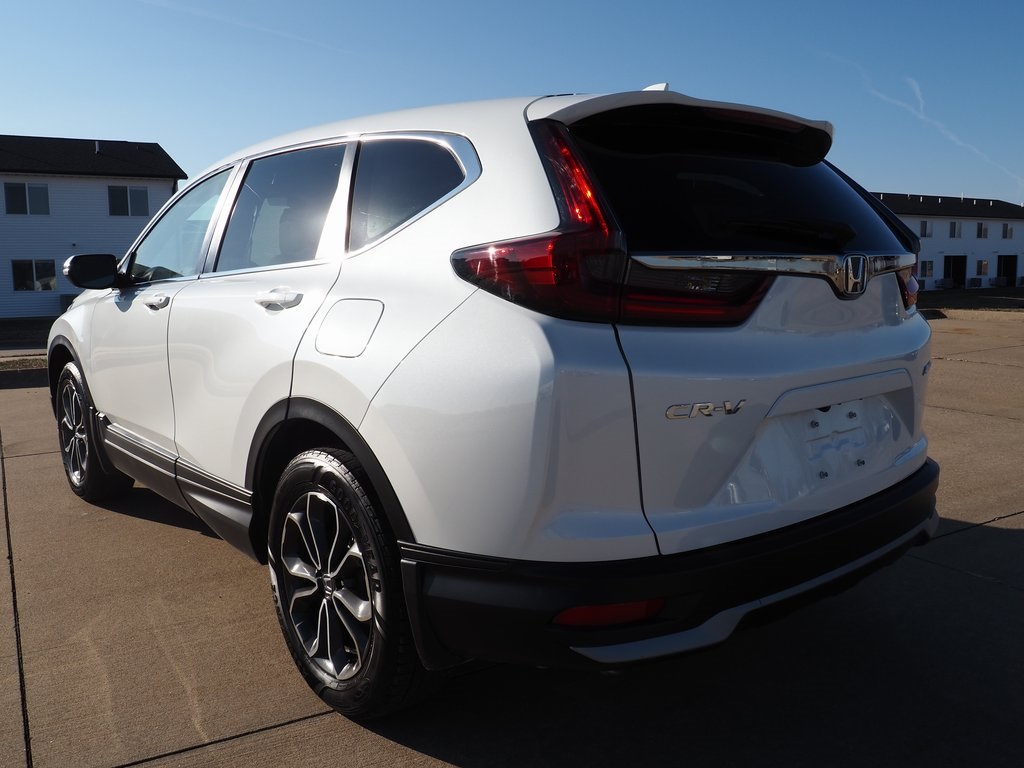 2022 Honda CR-V EX-L Platinum White Pearl 4D Sport Utility 1.5L I4 DOHC 16V CVT AWD EX-L This vehicle comes well equipped with 18" Alloy Wheels, 4-Wheel Disc Brakes, 5.64 Axle Ratio, 8 Speakers, ABS brakes, Adaptive Cruise Control: Adaptive Cruise Control (ACC) with Low-Speed Follow, Air Conditioning, Alloy wheels, AM/FM radio: SiriusXM, Apple CarPlay/Android Auto, Auto High-beam Headlights, Auto-dimming Rear-View mirror, Automatic temperature control, Blind Spot Information (BSI) System warning, Brake assist, Bumpers: body-color, Compass, Delay-off headlights, Driver door bin, Driver vanity mirror, Dual front impact airbags, Dual front side impact airbags, Electronic Stability Control, Exterior Parking Camera Rear, Forward collision: Collision Mitigation Braking System (CMBS) + FCW mitigation, Four wheel independent suspension, Front anti-roll bar, Front Bucket Seats, Front Center Armrest, Front dual zone A/C, Front fog lights, Front reading lights, Garage door transmitter: HomeLink, Heated door mirrors, Heated Front Bucket Seats, Heated front seats, Illuminated entry, Leather Seat Trim, Leather Shift Knob, Low tire pressure warning, Memory seat, Occupant sensing airbag, Outside temperature display, Overhead airbag, Overhead console, Panic alarm, Passenger door bin, Passenger vanity mirror, Power door mirrors, Power driver seat, Power Liftgate, Power moonroof, Power passenger seat, Power steering, Power windows, Radio data system, Radio: 180-Watt AM/FM/HD/SiriusXM Audio System, Rear anti-roll bar, Rear seat center armrest, Rear window defroster, Rear window wiper, Remote keyless entry, Security system, Speed control, Speed-sensing steering, Speed-Sensitive Wipers, Split folding rear seat, Spoiler, Steering wheel mounted audio controls, Tachometer, Telescoping steering wheel, Tilt steering wheel, Traction control, Trip computer, Turn signal indicator mirrors, and Variably intermittent wipers.