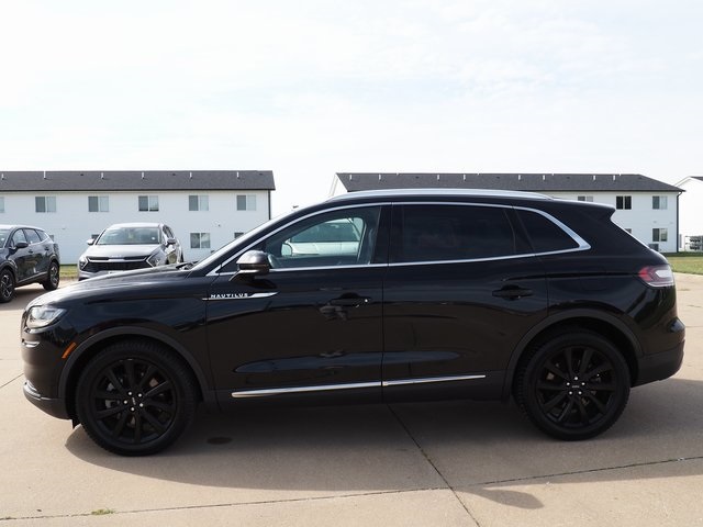 CARFAX One-Owner. 2022 Lincoln Nautilus Reserve Infinite Black Metallic Clearcoat 4D Sport Utility 2.0L Turbocharged 8-Speed Automatic AWD Reserve This vehicle comes well equipped with Cargo Accessories & Mat Package (All-Weather Floor Liners w/Carpet Mats, Durable Lightweight Rubber Cargo Mat, and Rear Bumper Anti-Scratch Pad/Load Protector), Equipment Group 200A, Monochromatic Package (20" Wheels, Body-Color Lower Grille, Body-Color Painted Nautilus Badging, Unique Body-Color Mesh Upper Grille, and Wheels: 20" Black Aluminum), 10 Speakers, 3.80 Axle Ratio, 4-Wheel Disc Brakes, ABS brakes, Air Conditioning, Alexa Built-In, Alloy wheels, AM/FM radio: SiriusXM with 360L, Auto High-beam Headlights, Auto tilt-away steering wheel, Auto-dimming door mirrors, Auto-dimming Rear-View mirror, Automatic temperature control, Brake assist, Bumpers: body-color, Compass, Delay-off headlights, Driver door bin, Driver vanity mirror, Dual front impact airbags, Dual front side impact airbags, Electronic Stability Control, Emergency communication system: 911 Assist, Four wheel independent suspension, Front anti-roll bar, Front Bucket Seats, Front Center Armrest w/Storage, Front dual zone A/C, Front reading lights, Fully automatic headlights, Garage door transmitter: HomeLink, Heated door mirrors, Heated front seats, Heated rear seats, Heated steering wheel, Illuminated entry, Knee airbag, Leather steering wheel, Linear Brushed Aluminum Applique, Low tire pressure warning, Memory seat, Navigation System, Occupant sensing airbag, Outside temperature display, Overhead airbag, Overhead console, Panic alarm, Passenger door bin, Passenger vanity mirror, Power door mirrors, Power driver seat, Power Liftgate, Power moonroof: Panoramic Vista Roof, Power passenger seat, Power steering, Power windows, Prem Lthr-Trimmed Heated/Ventilated Captain Seats, Radio data system, Radio: AM/FM/HD Audio System, Rain sensing wipers, Rear anti-roll bar, Rear reading lights, Rear seat center armrest, Rear window defroster, Rear window wiper, Remote keyless entry, Satin Roof Rack Side Rails w/o Crossbars, Security system, Speed control, Speed-sensing steering, Speed-Sensitive Wipers, Split folding rear seat, Spoiler, Steering wheel memory, Steering wheel mounted A/C controls, Steering wheel mounted audio controls, SYNC 4 w/Enhanced Voice Recognition, Tachometer, Telescoping steering wheel, Tilt steering wheel, Traction control, Trip computer, Turn signal indicator mirrors, Variably intermittent wipers, Ventilated front seats, and Wheels: 18" Premium Painted Bright Machined Alum.