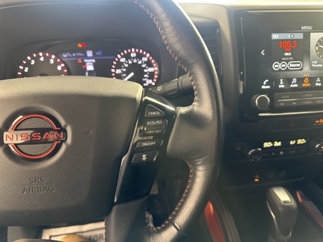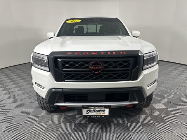 Glacier White 2022 Nissan Frontier PRO-4X w/Technology Package 4D Crew Cab 3.8L DI DOHC 24V V6 4WD 9-Speed Automatic Blind Spot Warning, High Beam Assist (HBA), Intelligent Cruise Control, Lane Departure Warning System, Navigation system: Nissan Navigation with Voice Recognition, Off-Road Protection Package, Rear Automatic Braking (RAB), Rear Cross Traffic Alert (RCTA), Rear Sonar System, Technology Package, Traffic Sign Recognition (TSR). Clean CARFAX.