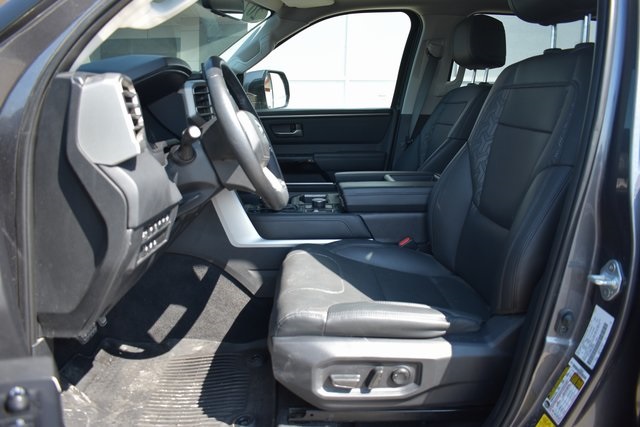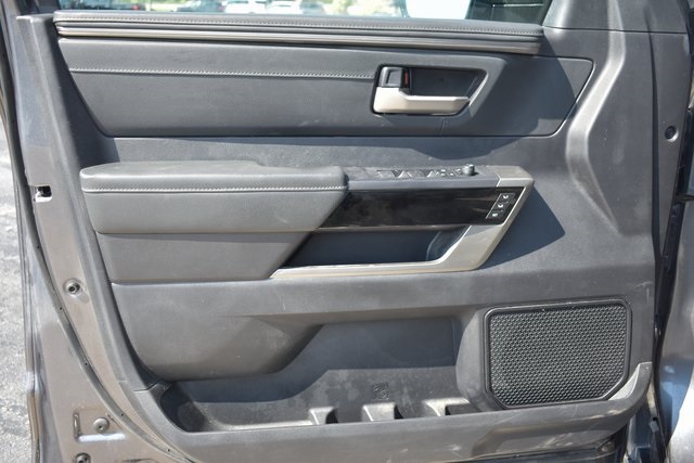 2022 Toyota Tundra Gray Limited 3.4L V6 10-Speed Automatic 4WD Fixed Running Boards, Towing/Camper Pkg, One Owner, Navigation, Sunroof/Moonroof, Leather, Local Trade, Backup Camera, Tundra Limited, 10-Speed Automatic, 4WD, Gray, 8-Way Pwr Adjustable Heated/Ventilated Front Seats, 9 Speakers, ABS brakes, Air Conditioning, AM/FM radio: SiriusXM, Automatic temperature control, Bumpers: body-color, Driver door bin, Driver vanity mirror, Exterior Parking Camera Rear, Front Bucket Seats, Front Center Armrest, Front dual zone A/C, Front reading lights, Fully automatic headlights, Garage door transmitter: HomeLink, Heated door mirrors, Heated front seats, Illuminated entry, Leather Shift Knob, Low tire pressure warning, Memory seat, Outside temperature display, Overhead console, Panic alarm, Passenger door bin, Passenger vanity mirror, Power door mirrors, Power driver seat, Power passenger seat, Power steering, Power Tilt/Slide Panoramic Sunroof, Power windows, Radio data system, Rear seat center armrest, Rear step bumper, Rear window defroster, Remote keyless entry, Speed control, Speed-sensing steering, Split folding rear seat, Steering wheel mounted audio controls, Tilt steering wheel, Traction control, Turn signal indicator mirrors, Ventilated front seats.