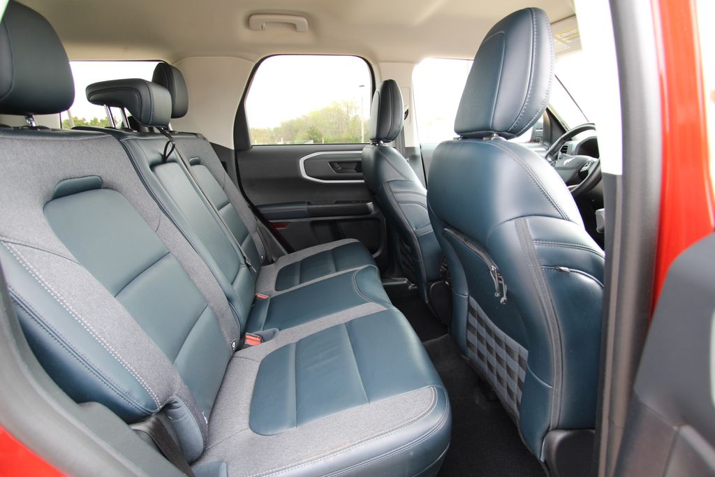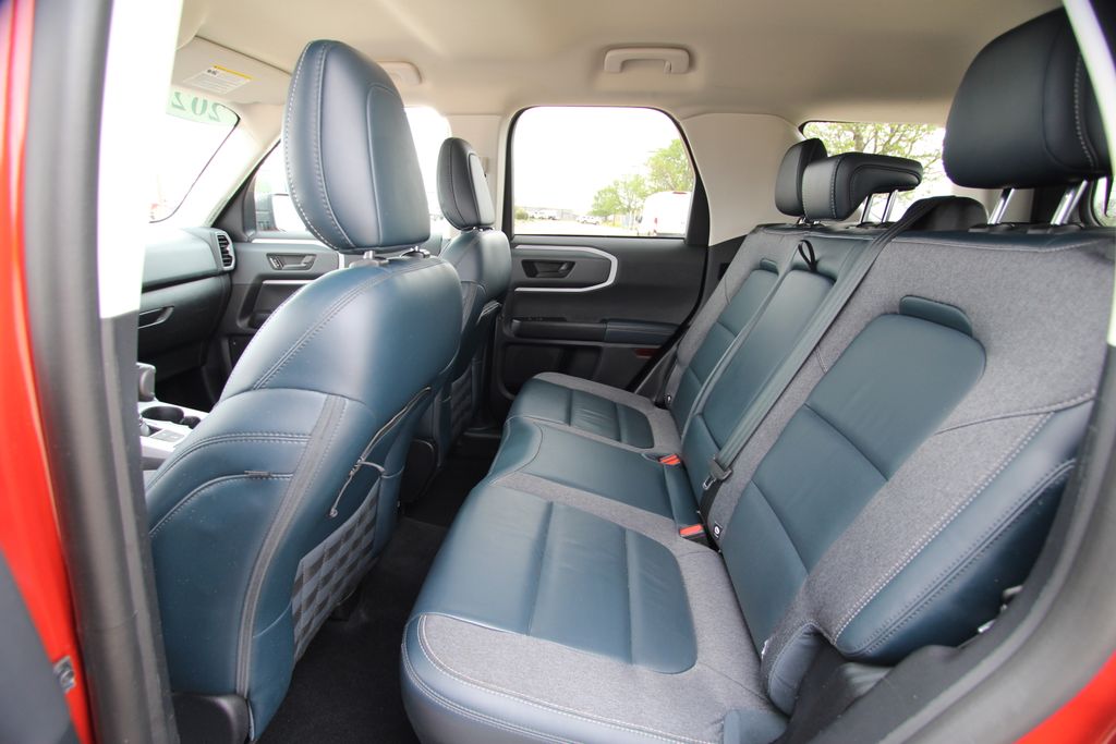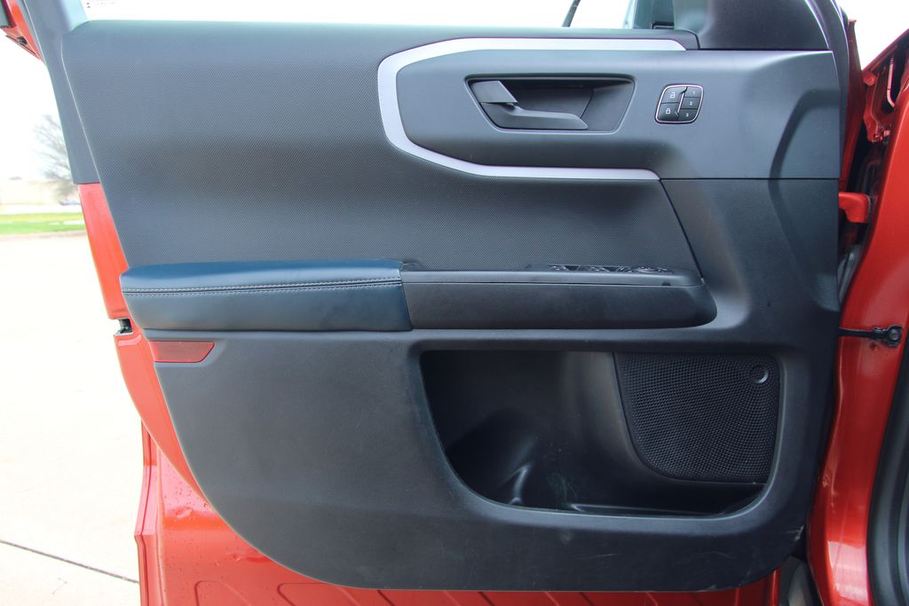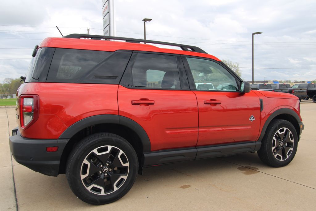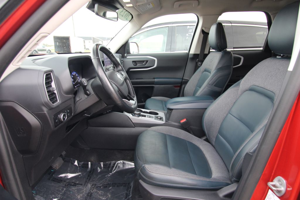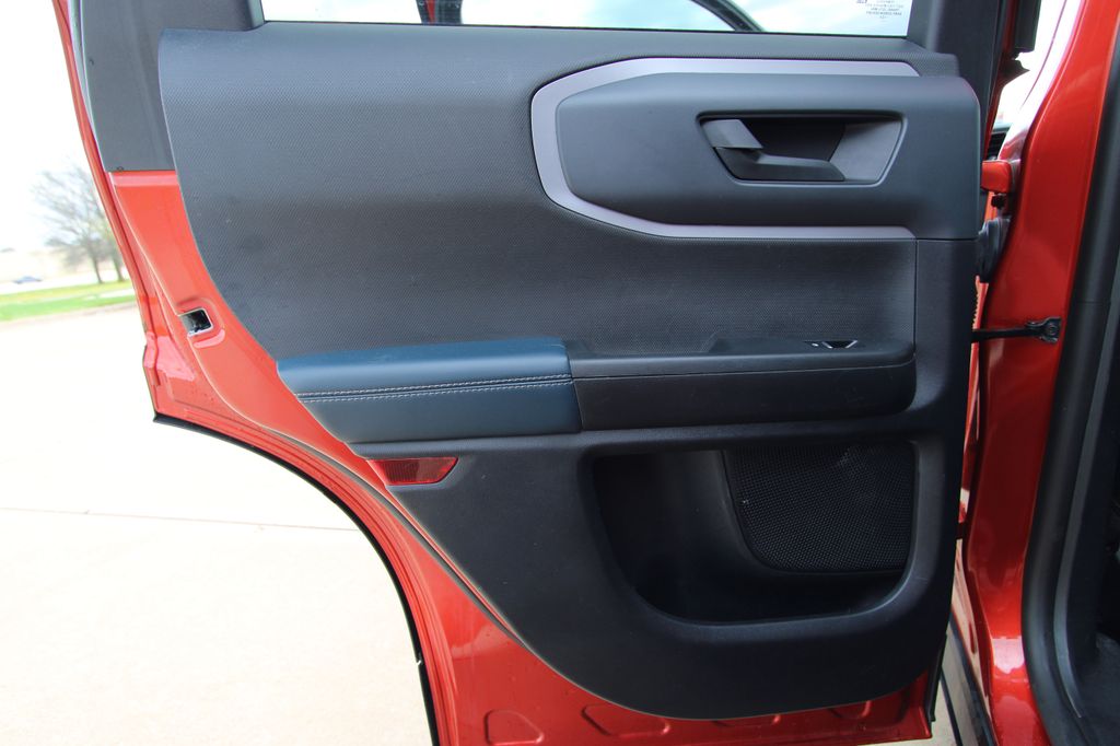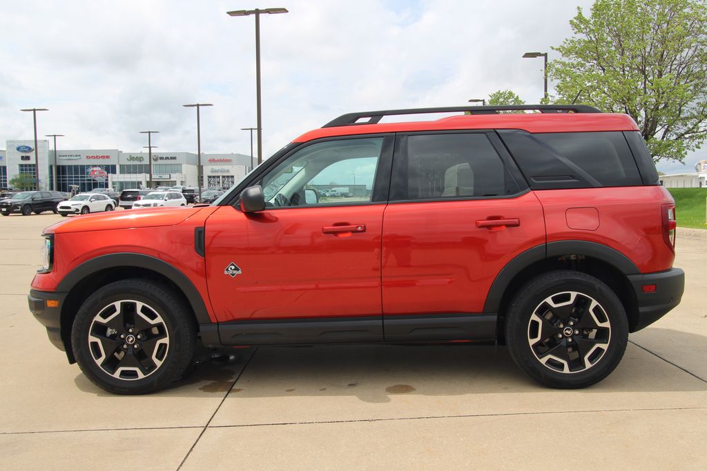 2023 Ford Bronco Sport Outer Banks Hot Pepper Red Tinted Clearcoat 4D Sport Utility 1.5L EcoBoost 8-Speed Automatic 4WD Outer Banks This vehicle comes well equipped with Equipment Group 300A, 3.80 Axle Ratio, 4-Wheel Disc Brakes, 4G LTE Wi-Fi Hotspot Credit, 6 Speakers, ABS brakes, Air Conditioning, Alloy wheels, AM/FM radio: SiriusXM, AM/FM Stereo, Auto High-beam Headlights, Auto-dimming Rear-View mirror, Automatic temperature control, Brake assist, Compass, Delay-off headlights, Driver door bin, Driver vanity mirror, Dual front impact airbags, Dual front side impact airbags, Electronic Stability Control, Emergency communication system: SYNC 3 911 Assist, Four wheel independent suspension, Front & Rear Floor Liners w/Carpet Mats, Front anti-roll bar, Front Bucket Seats, Front Center Armrest, Front dual zone A/C, Front fog lights, Front reading lights, Fully automatic headlights, Heated door mirrors, Heated front seats, Heated steering wheel, Illuminated entry, Knee airbag, Leather Trimmed Heated Sport Contour Bucket Seats, Low tire pressure warning, Memory seat, Occupant sensing airbag, Outside temperature display, Overhead airbag, Overhead console, Panic alarm, Passenger door bin, Passenger vanity mirror, Power door mirrors, Power driver seat, Power passenger seat, Power steering, Power windows, Radio data system, Rain sensing wipers, Rear anti-roll bar, Rear Parking Sensors, Rear reading lights, Rear seat center armrest, Rear window defroster, Rear window wiper, Remote keyless entry, Security system, SiriusXM, Speed control, Speed-sensing steering, Speed-Sensitive Wipers, Split folding rear seat, Steering wheel mounted audio controls, SYNC 3 Communications & Entertainment System, SYNC 3/Apple CarPlay/Android Auto, Tachometer, Telescoping steering wheel, Tilt steering wheel, Traction control, Trip computer, Variably intermittent wipers, and Wheels: 18" Ebony Black-Painted Aluminum.