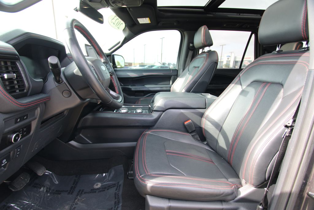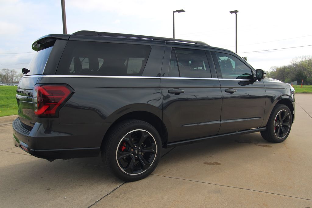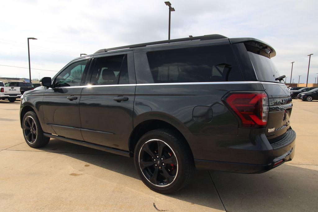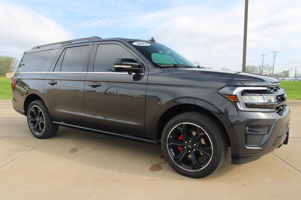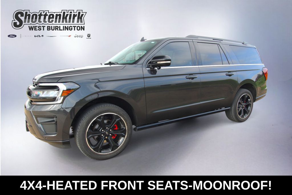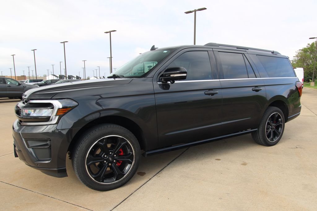 2023 Ford Expedition Max Limited Dark Matter Metallic 4D Sport Utility 3.5L V6 10-Speed Automatic 4WD Limited This vehicle comes well equipped with 12 Speakers, 3.31 Axle Ratio, 3rd row seats: split-bench, 4-Wheel Disc Brakes, ABS brakes, Adjustable pedals, Air Conditioning, Alloy wheels, AM/FM radio: SiriusXM with 360L, Auto High-beam Headlights, Auto-dimming door mirrors, Auto-dimming Rear-View mirror, Automatic temperature control, Brake assist, Bumpers: body-color, Compass, Delay-off headlights, Driver door bin, Driver vanity mirror, Dual front impact airbags, Dual front side impact airbags, Electronic Stability Control, Emergency communication system: SYNC 4 911 Assist, Exterior Parking Camera Rear, Four wheel independent suspension, Front anti-roll bar, Front Bucket Seats, Front Center Armrest, Front dual zone A/C, Front fog lights, Front reading lights, Fully automatic headlights, Garage door transmitter, Heated & Ventilated Leather Front Captain's Chairs, Heated door mirrors, Heated front seats, Heated rear seats, Heated steering wheel, Illuminated entry, Leather steering wheel, Low tire pressure warning, Memory seat, Navigation system: Connected Navigation, Occupant sensing airbag, Outside temperature display, Overhead airbag, Overhead console, Panic alarm, Passenger door bin, Passenger vanity mirror, Pedal memory, Power door mirrors, Power driver seat, Power Liftgate, Power moonroof, Power passenger seat, Power steering, Power windows, Radio data system, Radio: B&O Sound System by Bang & Olufsen, Rain sensing wipers, Rear air conditioning, Rear anti-roll bar, Rear reading lights, Rear window defroster, Rear window wiper, Reclining 3rd row seat, Remote keyless entry, Security system, SiriusXM w/360L, Speed control, Speed-sensing steering, Speed-Sensitive Wipers, Split folding rear seat, Spoiler, Steering wheel memory, Steering wheel mounted audio controls, SYNC 4 w/Enhanced Voice Recognition, Tachometer, Telescoping steering wheel, Tilt steering wheel, Traction control, Trip computer, Turn signal indicator mirrors, Variably intermittent wipers, Ventilated front seats, Voltmeter, and Wheels: 20" Bright Machined Aluminum.
