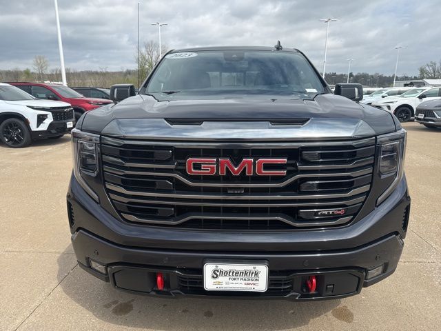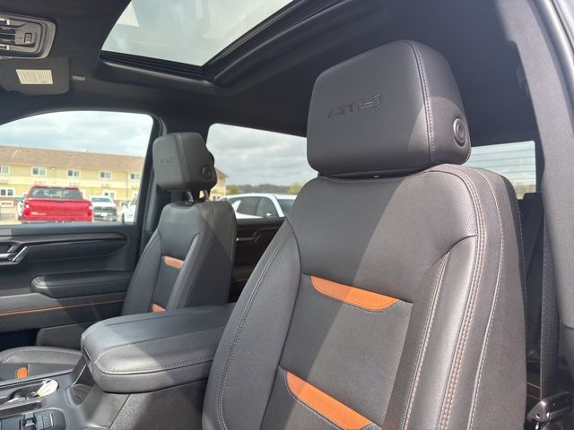 Clean CARFAX. Navigation, Moonroof, Leather, Heated and cooled seats, Heated seats, Heated steering wheel, XM SIRIUS Radio, Shottenkirk Certified, Fully Serviced and Detailed, Bluetooth, Rear Back Up Camera, Power driver's seat, Power passenger seat, Memory seats, Blind spot indicator, Tow package, Apple Car Play, Onstar, Balance of factory warranty, Free Carfax history report, Steering Wheel Controls, Alloy Wheels, Leather Interior, Power Sunroof/Moonroof, Lane Monitor, Sierra 1500 AT4, 4D Crew Cab, 3.0L I6, 10-Speed Automatic, 4WD, Titanium Rush Metallic, Jet Black w/Kalahari Accents w/Perforated Front Leather Seat Trim, 10-Way Power Driver Seat Adjuster w/Lumbar, 10-Way Power Passenger Seat Adjuster w/Lumbar, 120-Volt Bed Mounted Power Outlet, 120-Volt Instrument Panel Power Outlet, 2 Charge/Data USB Ports Inside Center Console, 2 Type-C Charge-Only Rear USB Ports, 2 USB Ports, 220 Amp Alternator, 3.23 Rear Axle Ratio, 4-Wheel Disc Brakes, 7 Speakers, ABS brakes, Adaptive Cruise Control, Air Conditioning, Alloy wheels, AM/FM radio, Apple CarPlay/Android Auto, AT4 Preferred Package, Auto High-beam Headlights, Auto-dimming door mirrors, Auto-dimming Rear-View mirror, Auto-Locking Rear Differential, Automatic Emergency Braking, Automatic temperature control, Black Chrome Header & Grille Insert Bars, Block heater, Brake assist, Buckle to Drive, Bumpers: body-color, Color-Keyed Carpeting Floor Covering, Compass, Deep-Tinted Glass, Delay-off headlights, Driver door bin, Driver Memory, Driver vanity mirror, Dual front impact airbags, Dual front side impact airbags, Electric Rear-Window Defogger, Electrical Steering Column Lock, Electronic stabiliy control, Emergency communication system: OnStar and GMC connected services capable, Engine Block Heater, Floor-Mounted Center Console, Following Distance Indicator, Forward Collision Alert, Front & Rear Black Molded Splash Guards (LPO), Front anti-roll bar, Front Bucket Seats, Front Center Armrest, Front dual zone A/C, Front fog lights, Front License Plate Kit, Front Pedestrian Braking, Front Prem Floor Liners w/Removable Carpet Insert, Front Rainsensing Wipers, Front reading lights, Front wheel independent suspension, Fully automatic headlights, GMC Connected Access Capable, HD Surround Vision, Heated 2nd Row Outboard Seats, Heated door mirrors, Heated Driver & Front Outboard Passenger Seating, Heated front seats, Heated rear seats, Heated steering wheel, Heavy-Duty Air Filter, Hill Descent Control, Hitch Guidance, Hitch Guidance w/Hitch View, Illuminated entry, In-Vehicle Trailering App, Integrated Trailer Brake Controller, IntelliBeam Automatic High Beam On/Off, Keyless Open & Start, Lane Keep Assist w/Lane Departure Warning, LED Cargo Area Lighting, Low tire pressure warning, Memory seat, Navigation System, Occupant sensing airbag, Off-Road Suspension, OnStar & GMC Connected Services Capable, Outside temperature display, Overhead airbag, Overhead console, Panic alarm, Passenger door bin, Passenger vanity mirror, Perforated Front Leather Seat Trim, Perimeter Lighting, Power Door Locks, Power door mirrors, Power driver seat, Power Front Passenger Windows w/Express Up/Down, Power Front Windows w/Driver Express Up/Down, Power passenger seat, Power Rake & Telescoping Steering Column, Power Rear Windows w/Express Down, Power Sliding Rear Window w/Rear Defogger, Power steering, Power Sunroof, Power windows, Preferred Equipment Group 4SB, Premium audio system: GMC Infotainment System, Premium Bose 7-Speaker Sound System, Push Button Start, Radio data system, Radio: Premium GMC Infotainment Audio System, Rain sensing wipers, Rear Cross Traffic Braking, Rear Pedestrian Detection, Rear Prem Floor Liners w/Removable Carpet Insert, Rear reading lights, Rear seat center armrest, Rear step bumper, Rear Wheelhouse Liners, Rear window defroster, Red Recovery Hooks, Remote keyless entry, Remote Vehicle Starter System, Safety Alert Seat, Security system, SiriusXM w/360L, Speed control, Speed-sensing st