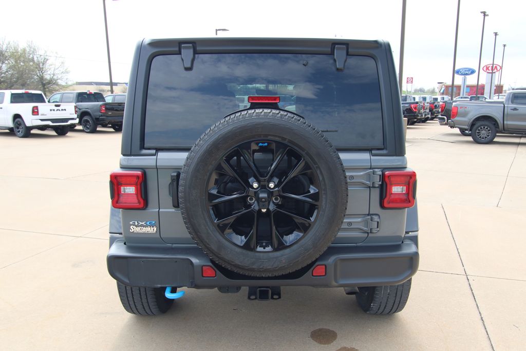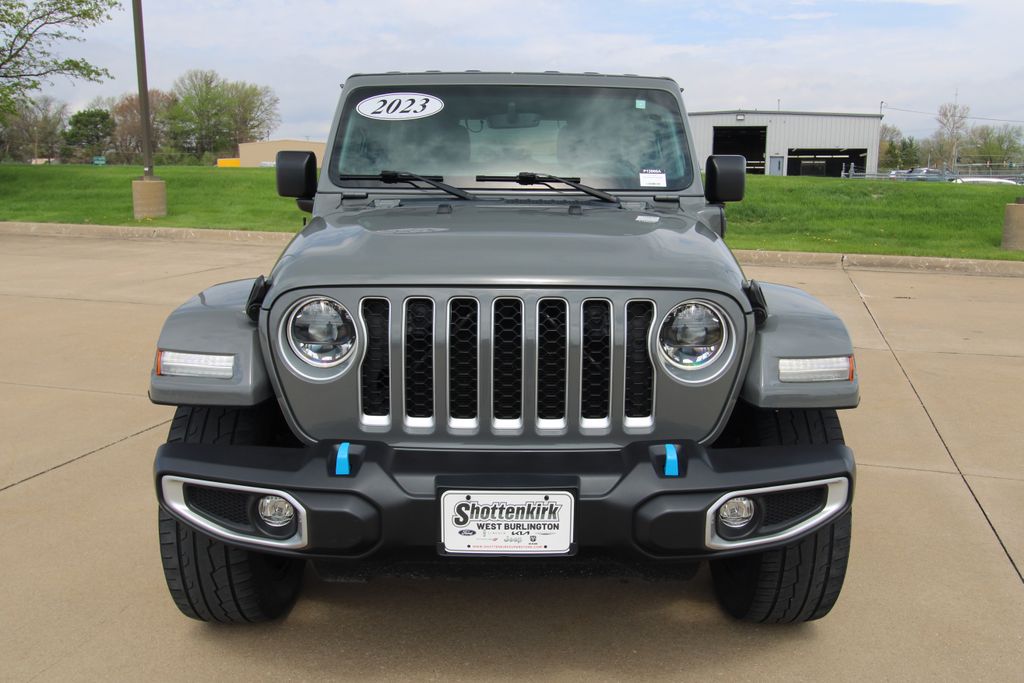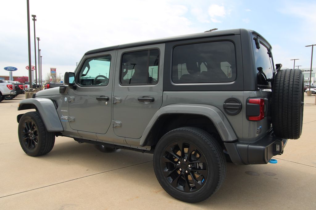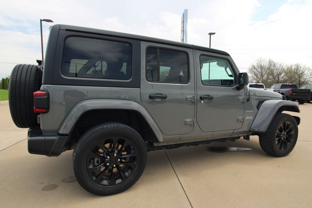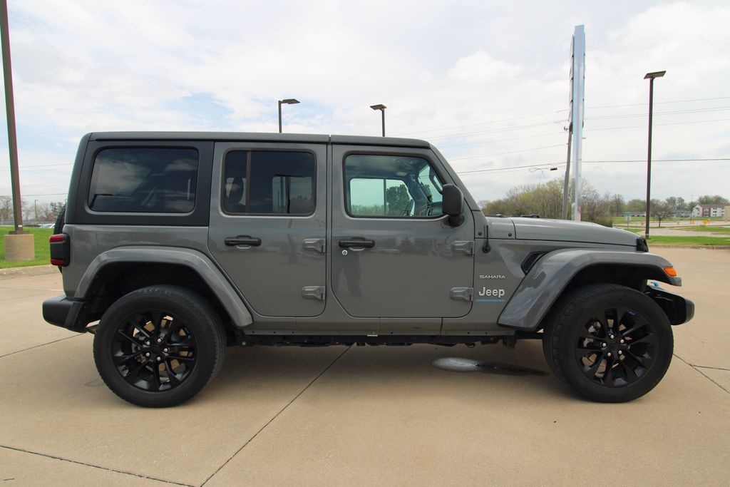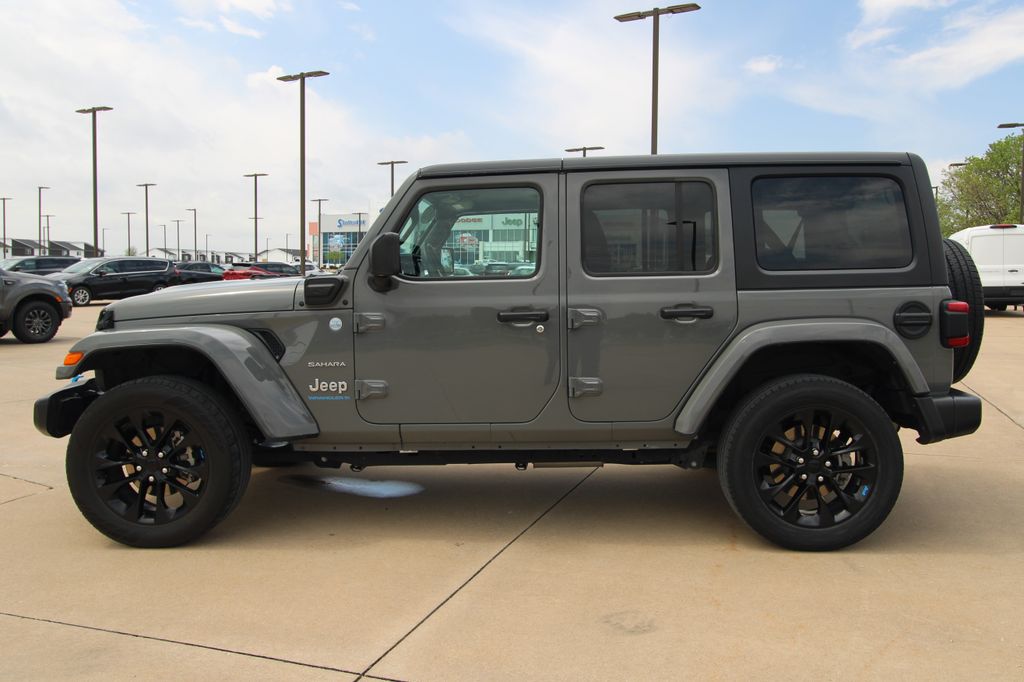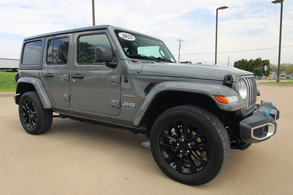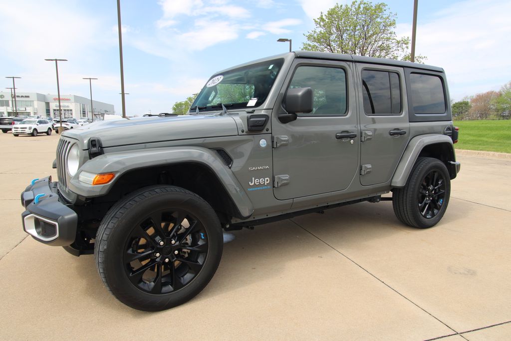 2023 Jeep Wrangler Sahara 4xe Sting-Gray Clearcoat 4D Sport Utility 2.0L I4 DOHC 8-Speed Automatic 4WD Sahara 4xe This vehicle comes well equipped with Quick Order Package 29P Sahara, Trailer Tow & Aux Switch Group (7 & 4 Pin Wiring Harness, 700 Amp Maintenance Free Battery, Auxiliary Switches, and Class II Receiver Hitch), 3.73 Rear Axle Ratio, 4-Wheel Disc Brakes, 9 Speakers, ABS brakes, Air Conditioning, Alloy wheels, AM/FM radio: SiriusXM, Apple CarPlay/Android Auto, Auto-dimming Rear-View mirror, Automatic temperature control, Black 3-Piece Hard Top, Brake assist, Compass, Delay-off headlights, Driver door bin, Driver vanity mirror, Dual front impact airbags, Dual front side impact airbags, Electronic Stability Control, Emergency communication system: SiriusXM Guardian, Freedom Panel Storage Bag, Front anti-roll bar, Front Bucket Seats, Front Center Armrest w/Storage, Front dual zone A/C, Front fog lights, Front License Plate Bracket, Front reading lights, Fully automatic headlights, Garage door transmitter, Heated door mirrors, Illuminated entry, Integrated roll-over protection, Leather Shift Knob, Low tire pressure warning, Navigation System, Occupant sensing airbag, Outside temperature display, Panic alarm, ParkView Rear Back-Up Camera, Passenger door bin, Passenger vanity mirror, Power door mirrors, Power steering, Power windows, Premium McKinley Trimmed Seats, Radio data system, Radio: Uconnect 4C Nav w/8.4" Display, Rear anti-roll bar, Rear reading lights, Rear seat center armrest, Rear Window Defroster, Rear Window Wiper/Washer, Remote keyless entry, Security system, Speed control, Split folding rear seat, Sport Suspension, Steering wheel mounted audio controls, Tachometer, Telescoping steering wheel, Tilt steering wheel, Traction control, Trip computer, Variably intermittent wipers, Voltmeter, and Wheels: 20" x 8" Fully Painted Aluminum.