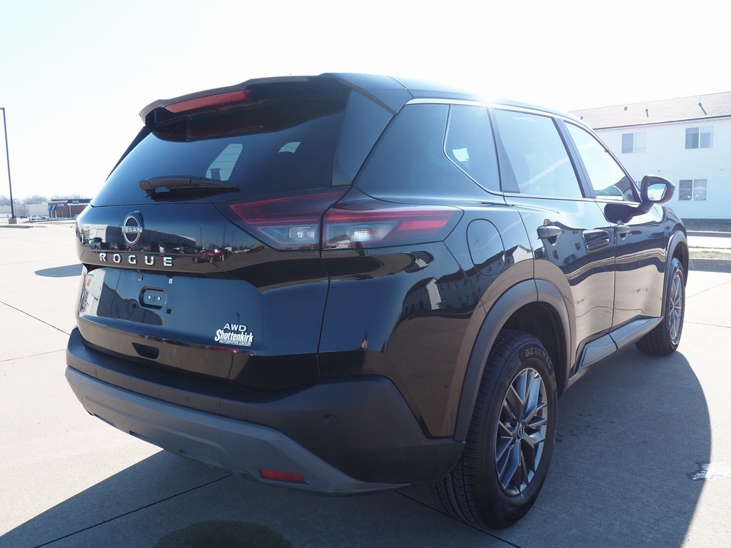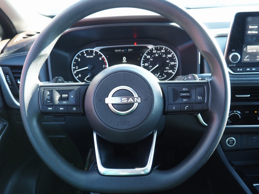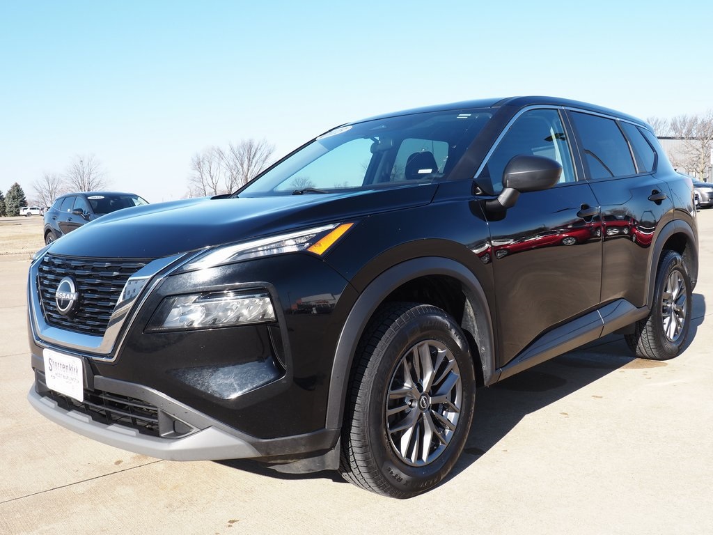 2023 Nissan Rogue S Super Black 4D Sport Utility 1.5L I3 Turbocharged DOHC 12V LEV3-ULEV50 201hp CVT with Xtronic AWD S This vehicle comes well equipped with 17" Aluminum Alloy Wheels, 4 Speakers, 4-Wheel Disc Brakes, 5.604 Axle Ratio, ABS brakes, Air Conditioning, Alloy wheels, AM/FM Radio, AM/FM radio: SiriusXM, Auto High-beam Headlights, Blind Spot Warning, Brake assist, Bumpers: body-color, Cloth Seat Trim, Delay-off headlights, Driver door bin, Driver vanity mirror, Dual front impact airbags, Dual front side impact airbags, Electronic Stability Control, First Aid Kit, Floor Mats w/1-Piece Cargo Area Protector, Four wheel independent suspension, Front anti-roll bar, Front Bucket Seats, Front Center Armrest, Front reading lights, Fully automatic headlights, Illuminated entry, Knee airbag, Low tire pressure warning, NissanConnect featuring Apple CarPlay and Android Auto, Occupant sensing airbag, Outside temperature display, Overhead airbag, Overhead console, Panic alarm, Passenger door bin, Passenger vanity mirror, Power door mirrors, Power steering, Power windows, Radio data system, Rear anti-roll bar, Rear Parking Sensors, Rear seat center armrest, Rear side impact airbag, Rear window defroster, Rear window wiper, Remote keyless entry, Speed control, Speed-Sensitive Wipers, Split folding rear seat, Spoiler, Steering wheel mounted audio controls, Tachometer, Telescoping steering wheel, Tilt steering wheel, Traction control, Trip computer, and Variably intermittent wipers.