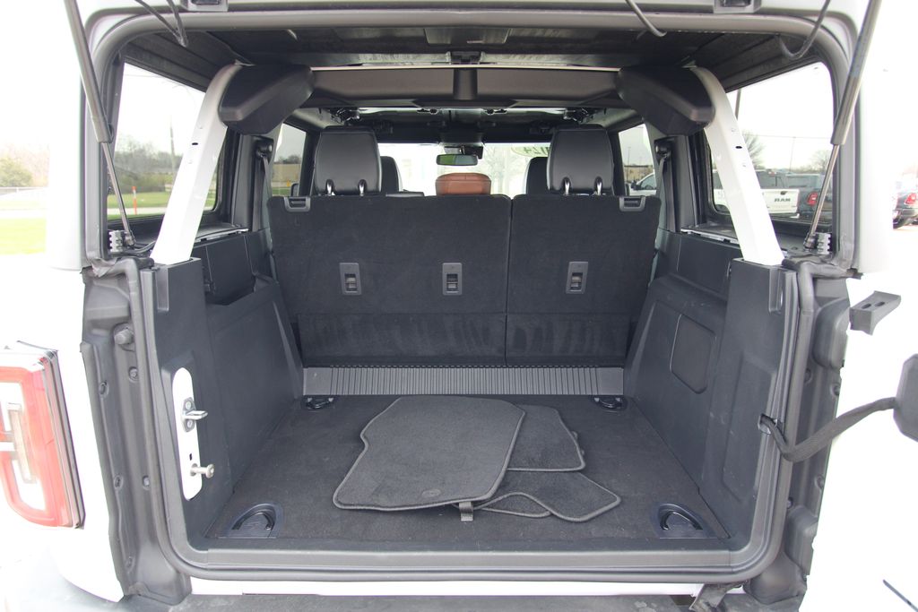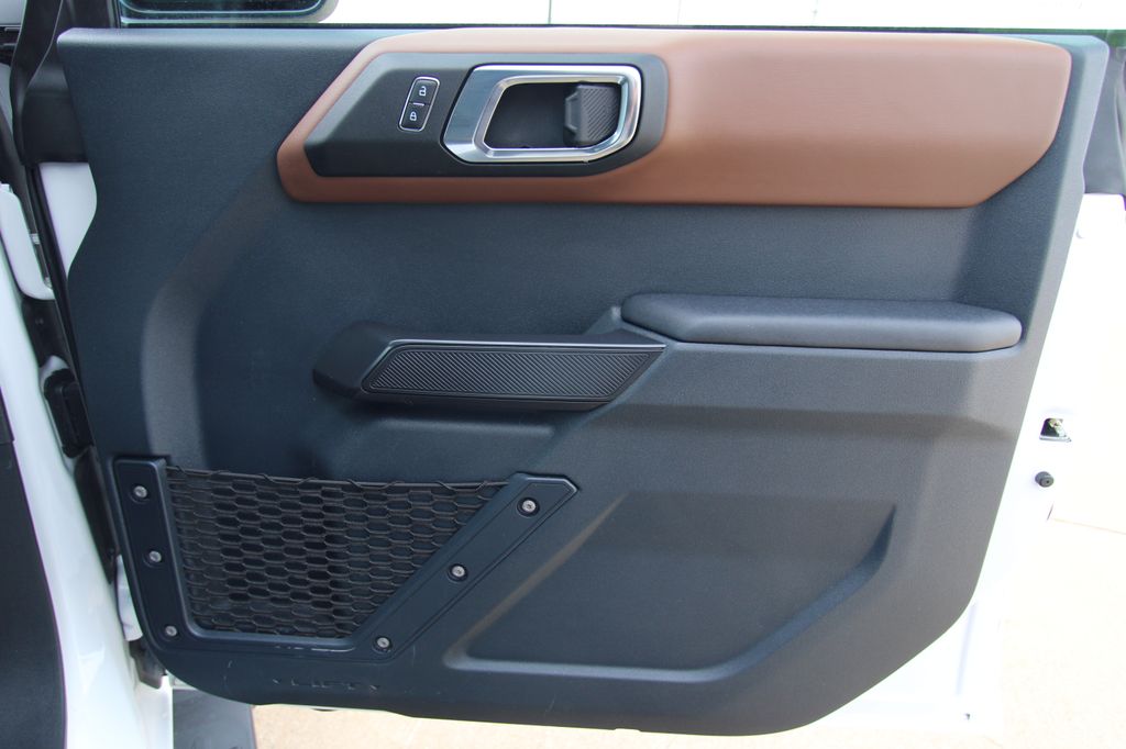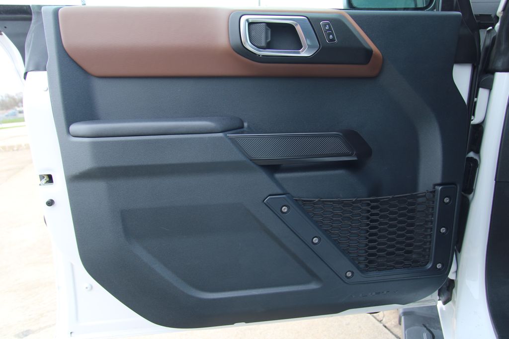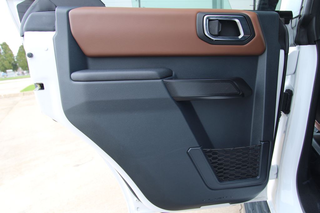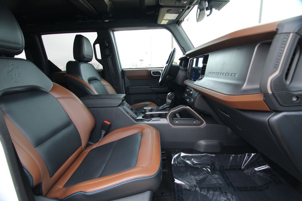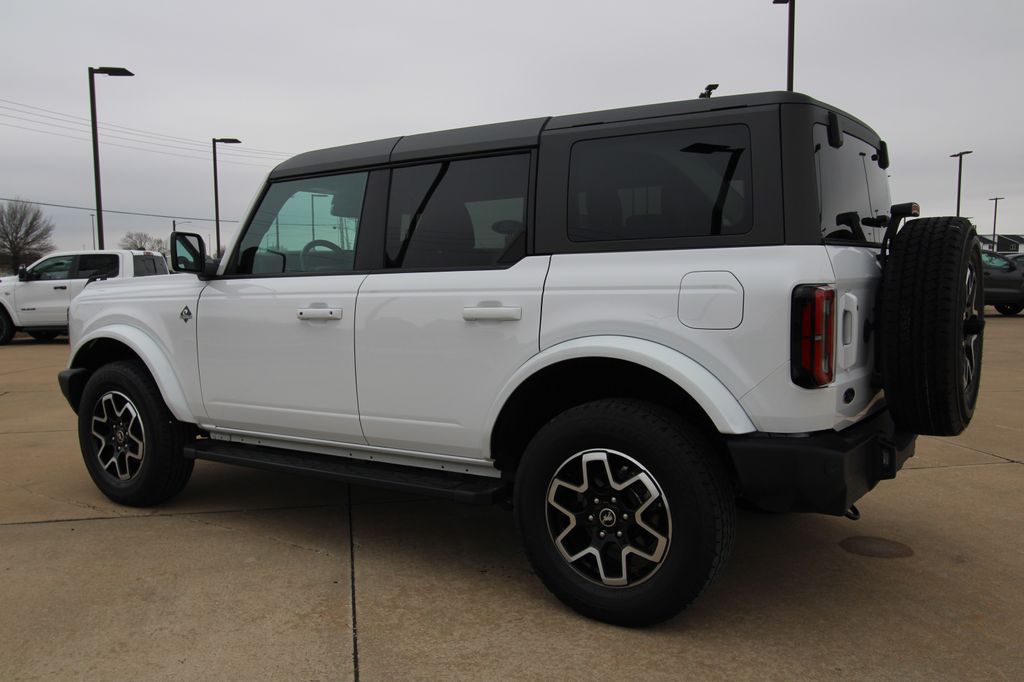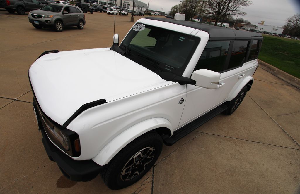 2024 Ford Bronco Outer Banks Oxford White 4D Sport Utility 2.3L EcoBoost I-4 10-Speed Automatic 4WD Outer Banks This vehicle comes well equipped with 18" Bright Machined Aluminum Wheels, 3.73 Axle Ratio, 4-Wheel Disc Brakes, 7 Speakers, ABS brakes, Air Conditioning, Alloy wheels, AM/FM radio: SiriusXM with 360L, AM/FM Stereo, Auto High-beam Headlights, Auto-dimming Rear-View mirror, Automatic temperature control, Brake assist, Compass, Connected Navigation, Delay-off headlights, Driver door bin, Driver vanity mirror, Dual front impact airbags, Dual front side impact airbags, Electronic Stability Control, Emergency communication system: 911 Assist, Exterior Parking Camera Rear, Front anti-roll bar, Front Bucket Seats, Front Center Armrest, Front dual zone A/C, Front fog lights, Front reading lights, Front wheel independent suspension, Fully automatic headlights, Heated door mirrors, Heated front seats, Heated Leather-Trimmed/Vinyl Bucket Seats, Illuminated entry, Integrated roll-over protection, Leather Shift Knob, Low tire pressure warning, Navigation system: Connected Navigation, Occupant sensing airbag, Outside temperature display, Overhead airbag, Overhead console, Panic alarm, Passenger door bin, Passenger vanity mirror, Power door mirrors, Power driver seat, Power passenger seat, Power steering, Power windows, Radio data system, Rear seat center armrest, Remote keyless entry, Security system, SiriusXM Radio w/360L, Speed control, Split folding rear seat, Steering wheel mounted audio controls, SYNC 4, Tachometer, Telescoping steering wheel, Tilt steering wheel, Traction control, Trip computer, Variably intermittent wipers, and Voltmeter.