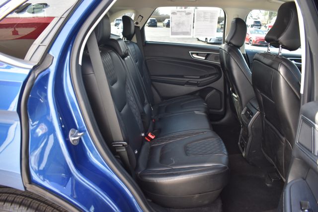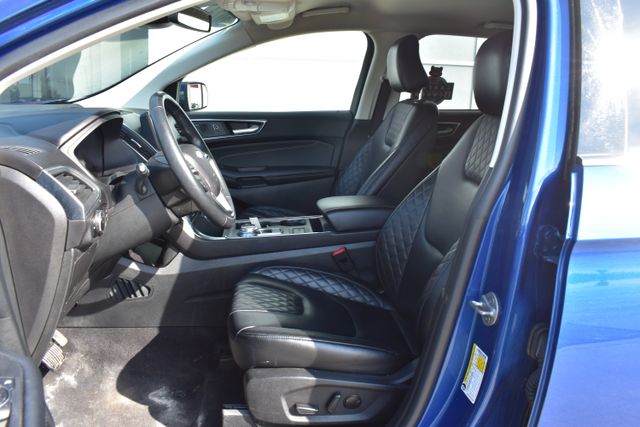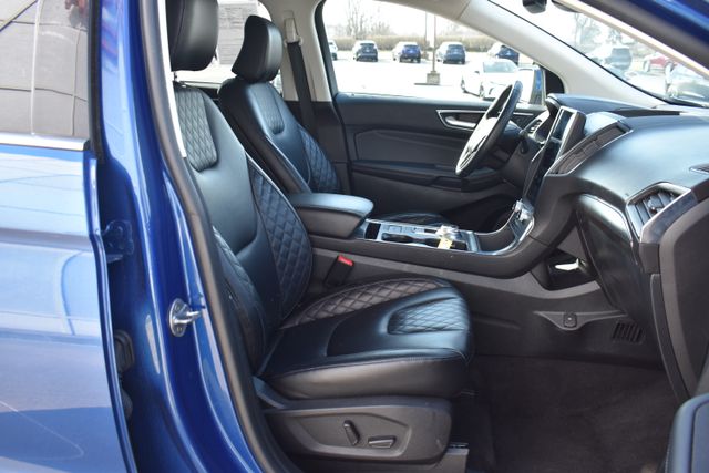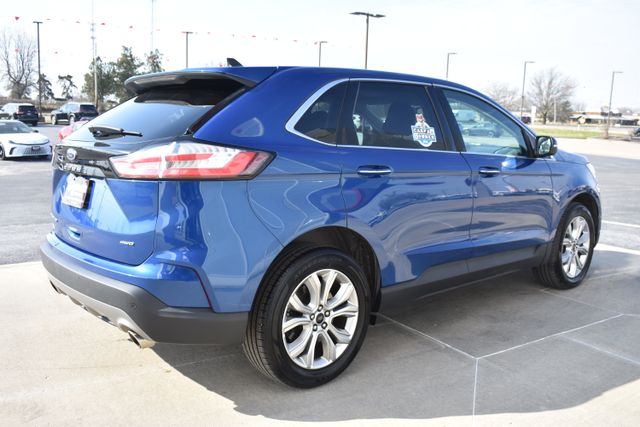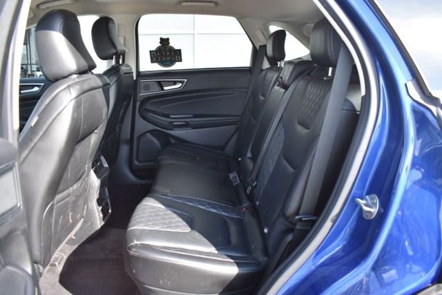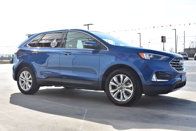2024 Ford Edge Blue Metallic Titanium EcoBoost 2.0L I4 GTDi DOHC Turbocharged VCT 8-Speed Automatic AWD Clean Carfax, One Owner, Leather, Backup Camera, Edge Titanium, 8-Speed Automatic, AWD, Blue Metallic, Ebony w/ActiveX Trimmed Heated Bucket Seats, 12 Speakers, ABS brakes, Air Conditioning, Alloy wheels, AM/FM radio: SiriusXM with 360L, Automatic temperature control, Bumpers: body-color, Compass, Driver door bin, Driver vanity mirror, Front Bucket Seats, Front Center Armrest w/Storage, Front dual zone A/C, Front reading lights, Fully automatic headlights, Heated door mirrors, Heated front seats, Heated steering wheel, Illuminated entry, Leather steering wheel, Low tire pressure warning, Memory seat, Outside temperature display, Overhead console, Panic alarm, Passenger door bin, Passenger vanity mirror, Power door mirrors, Power driver seat, Power Liftgate, Power passenger seat, Power steering, Power windows, Rear seat center armrest, Rear window defroster, Rear window wiper, Security system, Speed control, Split folding rear seat, Spoiler, Steering wheel mounted audio controls, Telescoping steering wheel, Tilt steering wheel, Traction control, Turn signal indicator mirrors, Variably intermittent wipers.