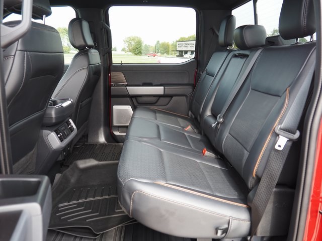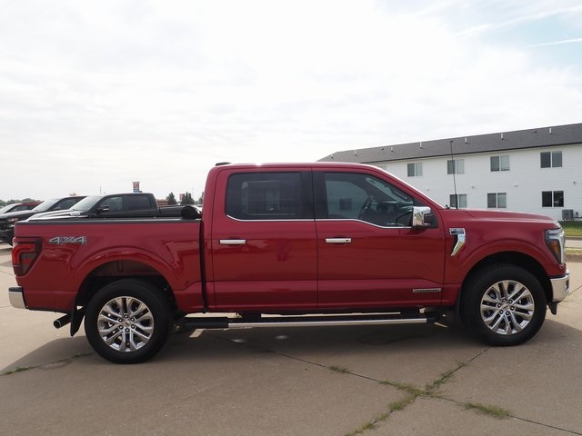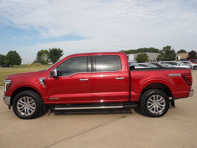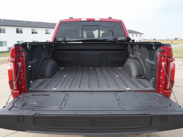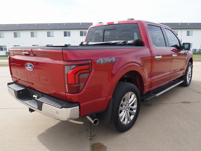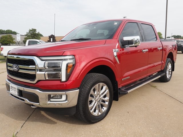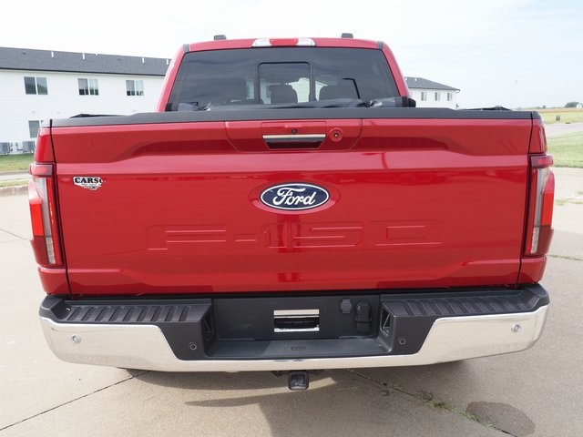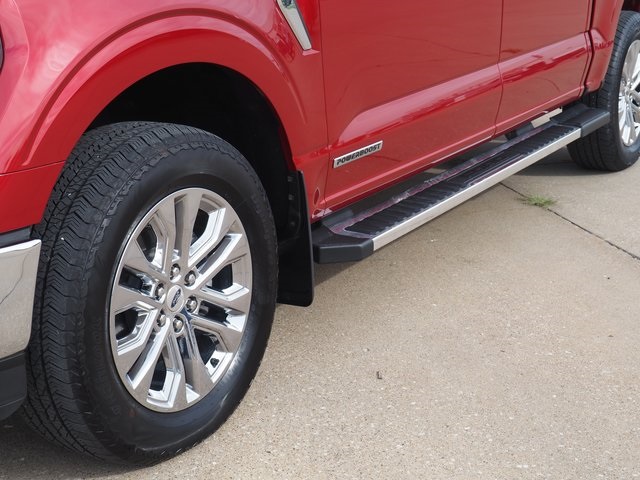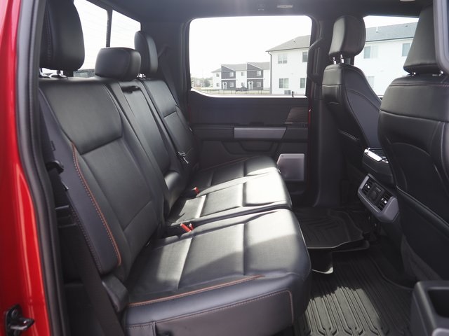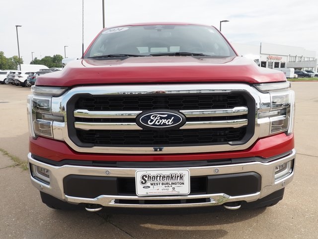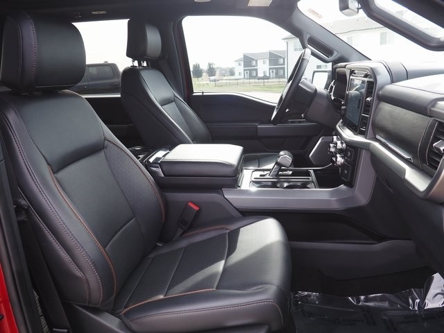 CARFAX One-Owner. 2024 Ford F-150 Lariat Rapid Red Metallic Tinted Clearcoat 4D SuperCrew 3.5L PowerBoost Full-Hybrid V6 10-Speed Automatic 4WD Lariat This vehicle comes well equipped with Bed Utility Package (4 Pickup Box Tie-Down Plates, LED Box Lighting, Power Tailgate, and Pro Access Tailgate), Equipment Group 502A High (2nd Row Heated Seats, 6" Extended Chrome Running Boards, Heads-Up Display, and Radio: B&O Unleashed Sound System by Bang & Olufsen), Mobile Office Package (Console Worksurface, Partitioned Lockable Rear Storage, and Wireless Charging), Tow/Haul Package (Integrated Trailer Brake Controller), and Navigation system: Connected Navigation Bed Utility Package (4 Pickup Box Tie-Down Plates, LED Box Lighting, Power Tailgate, and Pro Access Tailgate), Equipment Group 502A High (2nd Row Heated Seats, 6" Extended Chrome Running Boards, Heads-Up Display, and Radio: B&O Unleashed Sound System by Bang & Olufsen), Mobile Office Package (Console Worksurface, Partitioned Lockable Rear Storage, and Wireless Charging), Tow/Haul Package (Integrated Trailer Brake Controller), Navigation system: Connected Navigation, 3.31 Axle Ratio, 4-Wheel Disc Brakes, 8 Speakers, ABS brakes, Adjustable pedals, Air Conditioning, Alloy wheels, AM/FM radio: SiriusXM with 360L, Auto High-beam Headlights, Auto-dimming door mirrors, Auto-dimming Rear-View mirror, Automatic temperature control, Brake assist, Bumpers: chrome, Chrome wheels, Compass, Delay-off headlights, Driver door bin, Driver vanity mirror, Dual front impact airbags, Dual front side impact airbags, Electronic Locking w/3.73 Axle Ratio, Electronic Stability Control, Emergency communication system: SYNC 4 911 Assist, Front anti-roll bar, Front Bucket Seats, Front Center Armrest, Front dual zone A/C, Front fog lights, Front License Plate Bracket, Front reading lights, Front wheel independent suspension, Fully automatic headlights, Garage door transmitter, Heated door mirrors, Heated front seats, Heated steering wheel, Illuminated entry, Low tire pressure warning, Memory seat, Occupant sensing airbag, Outside temperature display, Overhead airbag, Overhead console, Panic alarm, Passenger door bin, Passenger vanity mirror, Pedal memory, Power door mirrors, Power driver seat, Power passenger seat, Power steering, Power windows, Pro Power Onboard - 7.2KW, Radio data system, Radio: B&O Sound System by Bang & Olufsen, Rain sensing wipers, Rear reading lights, Rear seat center armrest, Rear step bumper, Rear window defroster, Remote keyless entry, Security system, Speed control, Split folding rear seat, Steering wheel mounted audio controls, SYNC 4 w/Enhanced Voice Recognition, Tachometer, Telescoping steering wheel, Tilt steering wheel, Traction control, Trip computer, Turn signal indicator mirrors, Twin Panel Moonroof, Variably intermittent wipers, Ventilated front seats, Voltmeter, and Wheels: 20" Chrome-Like PVD. Odometer is 3519 miles below market average!