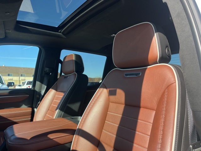 CARFAX One-Owner. Clean CARFAX. Navigation, Moonroof, Leather, Heated and cooled seats, Heated seats, Heated steering wheel, XM SIRIUS Radio, Push button start, Local trade, Shottenkirk Certified, Fully Serviced and Detailed, Bluetooth, Rear Back Up Camera, Power driver's seat, Power passenger seat, Memory seats, Blind spot indicator, Tow package, Apple Car Play, Onstar, Balance of factory warranty, Free Carfax history report, Steering Wheel Controls, Alloy Wheels, Leather Interior, Power Sunroof/Moonroof, Sierra 1500 Denali Ultimate, 4D Crew Cab, EcoTec3 6.2L V8, 10-Speed Automatic, 4WD, White Frost Tricoat, Alpine Umber w/Full Grain Leather Seat Trim, 12 Speakers, 120-Volt Bed Mounted Power Outlet, 120-Volt Interior Power Outlet, 16-Way Power Driver Seat Adjuster w/Lumbar, 16-Way Power Passenger Seat Adjuster w/Lumbar, 170 Amp Alternator, 2 Charge/Data USB Ports Inside Center Console, 2 Type-C Charge-Only Rear USB Ports, 2 USB Ports, 3.23 Rear Axle Ratio, 4-Wheel Disc Brakes, ABS brakes, Adaptive suspension, Air Conditioning, Alloy wheels, AM/FM radio: SiriusXM with 360L, Apple CarPlay/Android Auto, Auto High-beam Headlights, Auto-dimming door mirrors, Auto-dimming Rear-View mirror, Auto-Locking Rear Differential, Automatic temperature control, Bed View Camera, Bose Premium Series w/12-Speaker System, Brake assist, Buckle to Drive, Bumpers: body-color, Carbon Fiber Composite Bed, Chrome Recovery Hooks, Color-Keyed Carpeting Floor Covering, Compass, Deep-Tinted Glass, Delay-off headlights, Denali Premium Suspension w/Adaptive Ride Control, Driver door bin, Driver Memory, Driver vanity mirror, Dual Active Exhaust, Dual front impact airbags, Dual front side impact airbags, Electric Rear-Window Defogger, Electronic stabiliy control, Emergency communication system: OnStar and GMC connected services capable, Enhanced Automatic Emergency Braking, Floor-Mounted Center Console, Following Distance Indicator, Forward Collision Alert, Front anti-roll bar, Front Bucket Seats, Front Center Armrest, Front dual zone A/C, Front fog lights, Front License Plate Kit, Front Pedestrian Braking, Front Rain-Sensing Wipers, Front reading lights, Front wheel independent suspension, Full Grain Leather Seat Trim, Fully automatic headlights, Garage door transmitter, Genuine wood console insert, Genuine wood dashboard insert, Genuine wood door panel insert, GMC Connected Access Capable, HD Surround Vision, Heads-Up Display, Heated 2nd Row Outboard Seats, Heated door mirrors, Heated Driver & Front Outboard Passenger Seating, Heated front seats, Heated rear seats, Heated steering wheel, Heavy-Duty Air Filter, Hill Descent Control, Hitch Guidance, Hitch View, Illuminated entry, In-Vehicle Trailering System App, Integrated Trailer Brake Controller, IntelliBeam Automatic High Beam On/Off, Keyless Open & Start, Lane Keep Assist w/Lane Departure Warning, LED Cargo Area Lighting, Low tire pressure warning, Memory seat, Multicolor 15" Diagonal Head-Up Display, MultiPro Tailgate Audio System by Kicker (LPO), Navigation System, Occupant sensing airbag, OnStar & GMC Connected Services Capable, Outside temperature display, Overhead airbag, Overhead console, Panic alarm, Passenger door bin, Passenger vanity mirror, Perimeter Lighting, Power Door Locks, Power door mirrors, Power driver seat, Power Front Passenger Windows w/Express Up/Down, Power Front Windows w/Driver Express Up/Down, Power passenger seat, Power Rake & Telescoping Steering Column, Power Rear Windows w/Express Down, Power Sliding Rear Window w/Rear Defogger, Power steering, Power Sunroof, Power windows, Preferred Equipment Group 5SB, Premium audio system: GMC Infotainment System, Push Button Start, Radio data system, Radio: Premium GMC Infotainment Audio System, Rain sensing wipers, Rear Cross Traffic Braking, Rear Pedestrian Detection, Rear reading lights, Rear seat center armrest, Rear step bumper, Rear Wheelhouse Liners, Rear window defroster, Remote keyless entry, Remote Vehicle Starter System, Safe