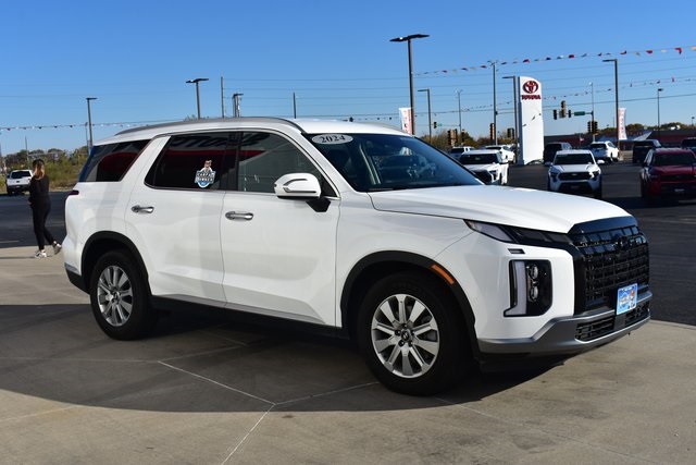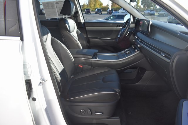 2024 Hyundai Palisade Hyper White SEL V6 8-Speed Automatic with SHIFTRONIC AWD One Owner, Navigation, Leather, Backup Camera, Palisade SEL, 8-Speed Automatic with SHIFTRONIC, AWD, Hyper White, Black w/H-Tex Leatherette Seat Trim, 3rd row seats: split-bench, 6 Speakers, ABS brakes, Air Conditioning, Alloy wheels, AM/FM radio: SiriusXM, Auto-dimming door mirrors, Automatic temperature control, Bumpers: body-color, Driver door bin, Driver vanity mirror, Exterior Parking Camera Rear, Front Bucket Seats, Front Center Armrest, Front dual zone A/C, Front reading lights, Fully automatic headlights, Heated door mirrors, Heated front seats, Illuminated entry, Low tire pressure warning, Outside temperature display, Overhead console, Panic alarm, Passenger door bin, Passenger vanity mirror, Power door mirrors, Power driver seat, Power Liftgate, Power passenger seat, Power steering, Power windows, Radio data system, Rear air conditioning, Rear window defroster, Rear window wiper, Reclining 3rd row seat, Remote keyless entry, Speed control, Split folding rear seat, Spoiler, Steering wheel mounted audio controls, Telescoping steering wheel, Traction control, Turn signal indicator mirrors.