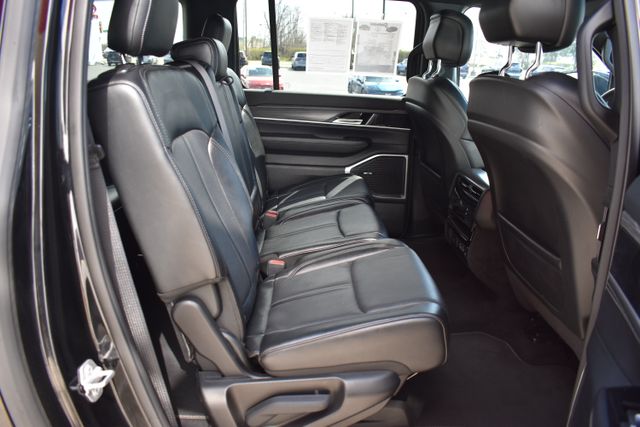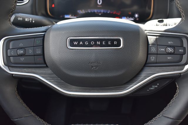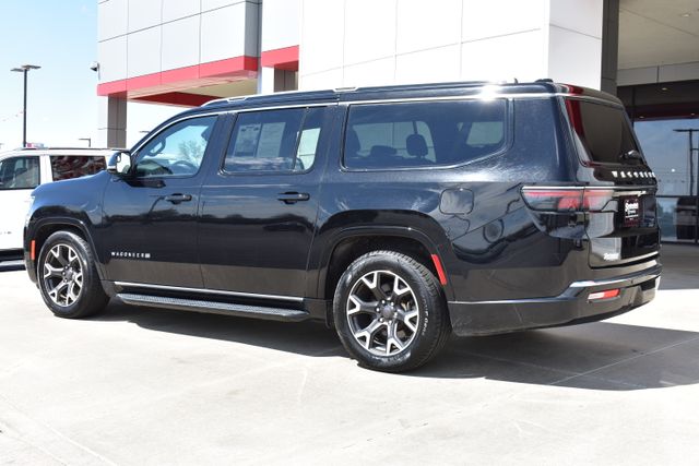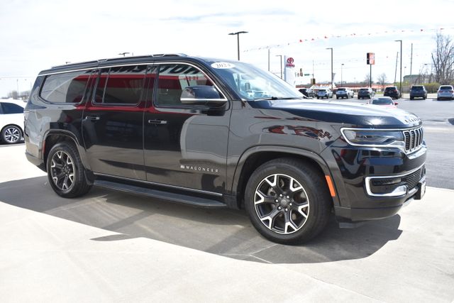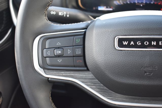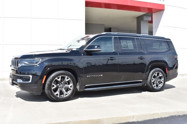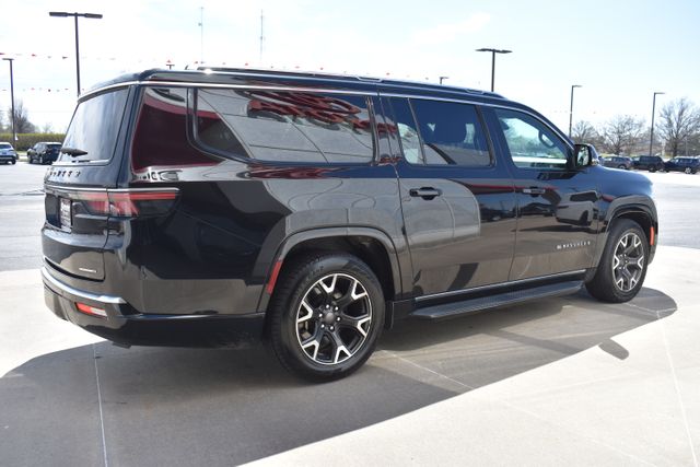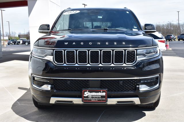 2024 Jeep Wagoneer L Diamond Black Crystal Pearlcoat Series III 3.0L I6 8-Speed Automatic 4WD Fixed Running Boards, Clean Carfax, One Owner, Navigation, Leather, Backup Camera, Wagoneer L Series III, 8-Speed Automatic, 4WD, Diamond Black Crystal Pearlcoat, Black Leather, 10 Speakers, 3rd row seats: bench, 8-Passenger Seating, ABS brakes, Adjustable pedals, Air Conditioning, Alloy wheels, AM/FM radio: SiriusXM with 360L, Apple CarPlay/Android Auto, Auto-dimming door mirrors, Auto-dimming Rear-View mirror, Automatic temperature control, Bumpers: body-color, Compass, Driver door bin, Driver vanity mirror, Driver's Seat Mounted Armrest, Exterior Parking Camera Rear, Front Bucket Seats, Front Center Armrest w/Storage, Front dual zone A/C, Front reading lights, Full Length Floor Console, Fully automatic headlights, Garage door transmitter, Heads-Up Display, Heated door mirrors, Heated front seats, Heated rear seats, Heated steering wheel, Illuminated entry, Leather Trimmed Bucket Seats, Low tire pressure warning, Memory seat, Navigation System, Outside temperature display, Overhead console, Passenger door bin, Passenger seat mounted armrest, Passenger vanity mirror, Pedal memory, Power door mirrors, Power driver seat, Power Liftgate, Power passenger seat, Power steering, Power windows, Radio data system, Rear air conditioning, Rear seat center armrest, Rear window defroster, Rear window wiper, Reclining 3rd row seat, Remote keyless entry, Security system, Speed control, Split folding rear seat, Steering wheel mounted audio controls, Telescoping steering wheel, Traction control, Trip computer, Turn signal indicator mirrors, Variably intermittent wipers, Ventilated front seats.