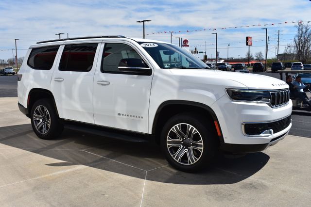 2024 Jeep Wagoneer Bright White Clearcoat Series II 3.0L I6 8-Speed Automatic 4WD Fixed Running Boards, Clean Carfax, One Owner, Navigation, Leather, Backup Camera, Wagoneer Series II, 8-Speed Automatic, 4WD, Bright White Clearcoat, Black Leather, 10 Speakers, 3rd row seats: bench, ABS brakes, Adjustable pedals, Air Conditioning, Alloy wheels, AM/FM radio: SiriusXM with 360L, Automatic temperature control, Compass, Driver door bin, Driver vanity mirror, Driver's Seat Mounted Armrest, Exterior Parking Camera Rear, Front Bucket Seats, Front dual zone A/C, Front reading lights, Fully automatic headlights, Garage door transmitter, Heated door mirrors, Heated front seats, Heated rear seats, Illuminated entry, Leather Trimmed Bucket Seats, Low tire pressure warning, Memory seat, Navigation System, Outside temperature display, Overhead console, Passenger door bin, Passenger seat mounted armrest, Passenger vanity mirror, Power door mirrors, Power driver seat, Power Liftgate, Power passenger seat, Power steering, Power windows, Radio data system, Rear air conditioning, Rear dual zone A/C, Rear seat center armrest, Rear window defroster, Rear window wiper, Reclining 3rd row seat, Remote keyless entry, Security system, Speed control, Split folding rear seat, Steering wheel mounted audio controls, Telescoping steering wheel, Traction control, Trip computer, Turn signal indicator mirrors, Variably intermittent wipers, Ventilated front seats.