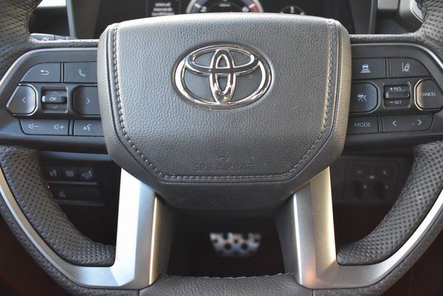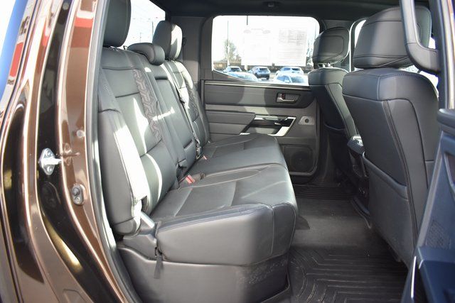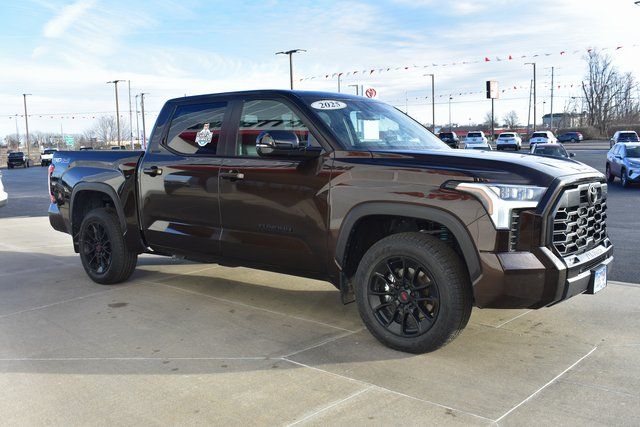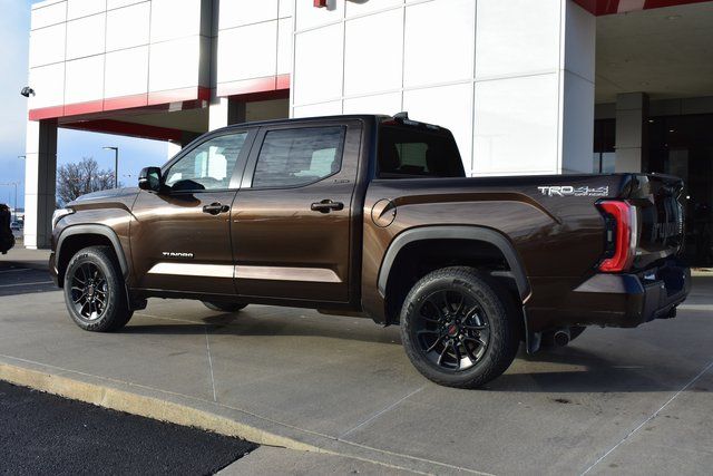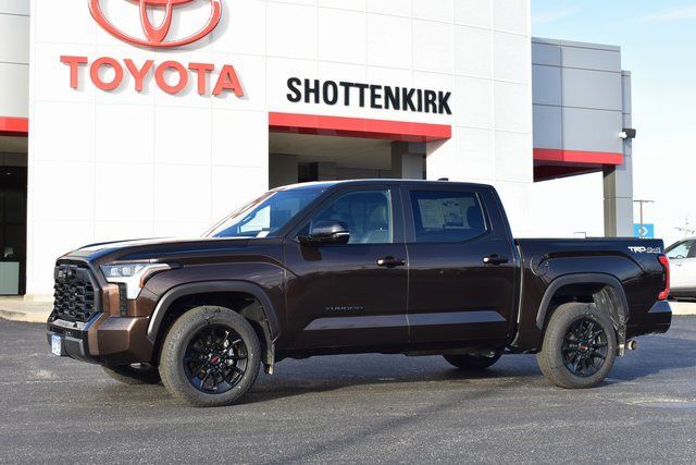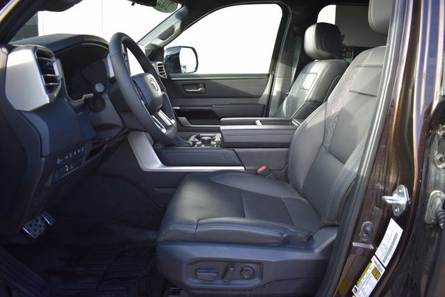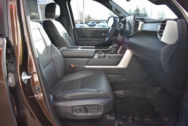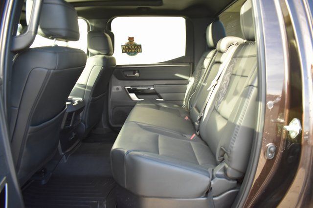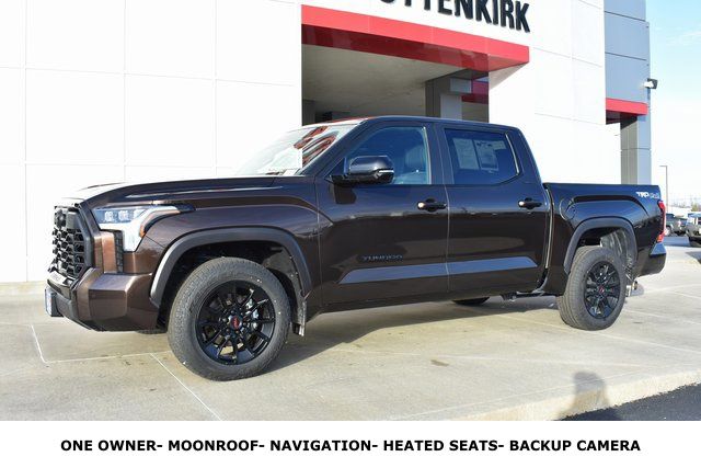 2025 Toyota Tundra Brown Limited 3.4L V6 10-Speed Automatic 4WD Towing/Camper Pkg, One Owner, Navigation, Sunroof/Moonroof, Leather, Local Trade, Backup Camera, Tundra Limited, 10-Speed Automatic, 4WD, Brown, 8-Way Pwr Adjustable Heated/Ventilated Front Seats, 9 Speakers, ABS brakes, Air Conditioning, Alloy wheels, AM/FM radio: SiriusXM, Auto-dimming door mirrors, Automatic temperature control, Bumpers: body-color, Driver door bin, Driver vanity mirror, Exterior Parking Camera Rear, Front Bucket Seats, Front Center Armrest, Front dual zone A/C, Front reading lights, Fully automatic headlights, Garage door transmitter: HomeLink, Heated door mirrors, Heated front seats, Illuminated entry, JBL Premium Audio, Leather Shift Knob, Leather steering wheel, Low tire pressure warning, Memory seat, Navigation System, Occupant sensing airbag, Outside temperature display, Panic alarm, Passenger door bin, Passenger vanity mirror, Power door mirrors, Power driver seat, Power passenger seat, Power steering, Power windows, Radio data system, Rear seat center armrest, Rear step bumper, Rear window defroster, Remote keyless entry, Safety Connect, Security system, SofTex Seat Trim, Speed control, Split folding rear seat, Steering wheel mounted audio controls, Tilt steering wheel, Traction control, Trip computer, Turn signal indicator mirrors, Variably intermittent wipers, Ventilated front seats.